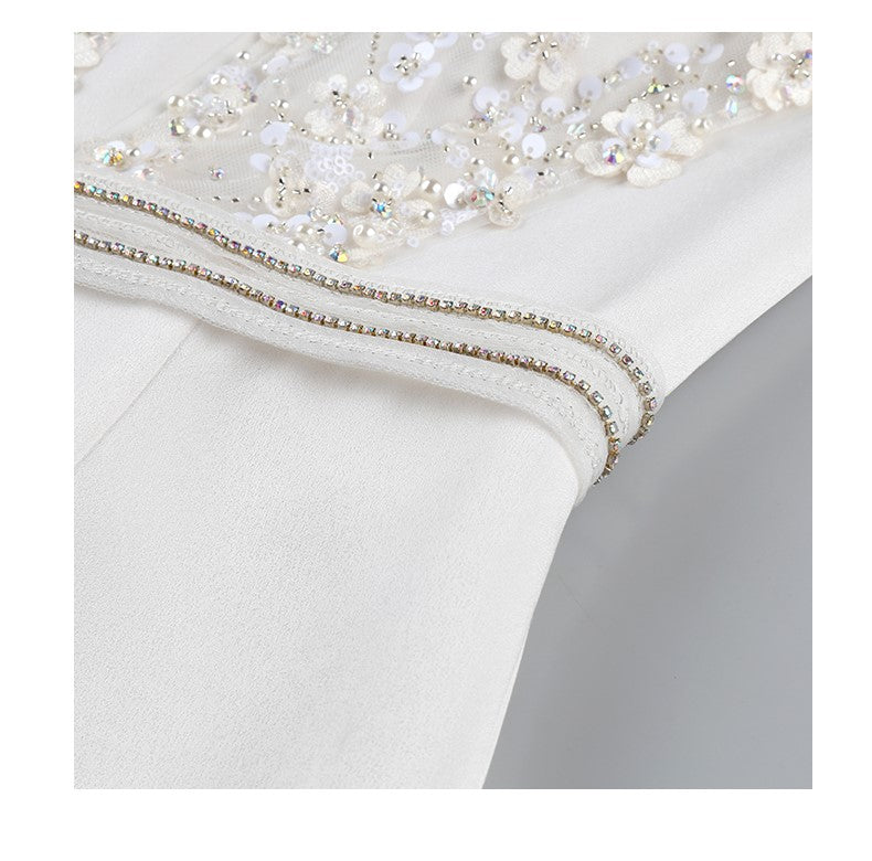 Indulge in the luxury and sophistication of SIDUO's Elegant Summer dinner dress. The midi sleeveless design, V-neckline, and slim fit are complemented by the unique and elegant white fabric. A sensual choice for any event, make a statement in this Rosa dress.