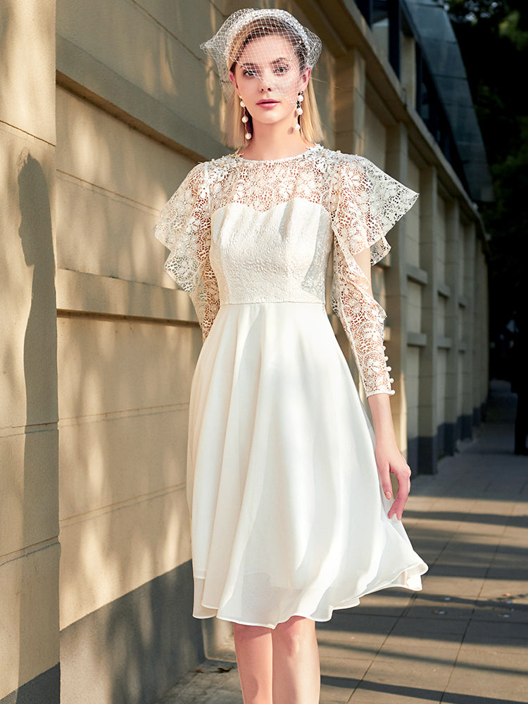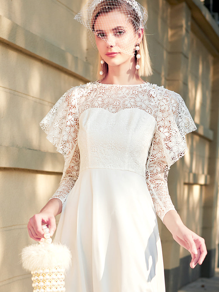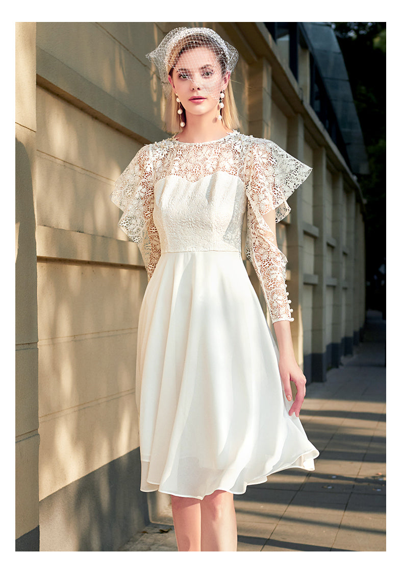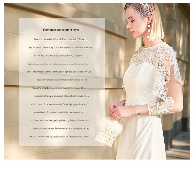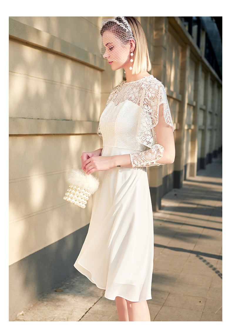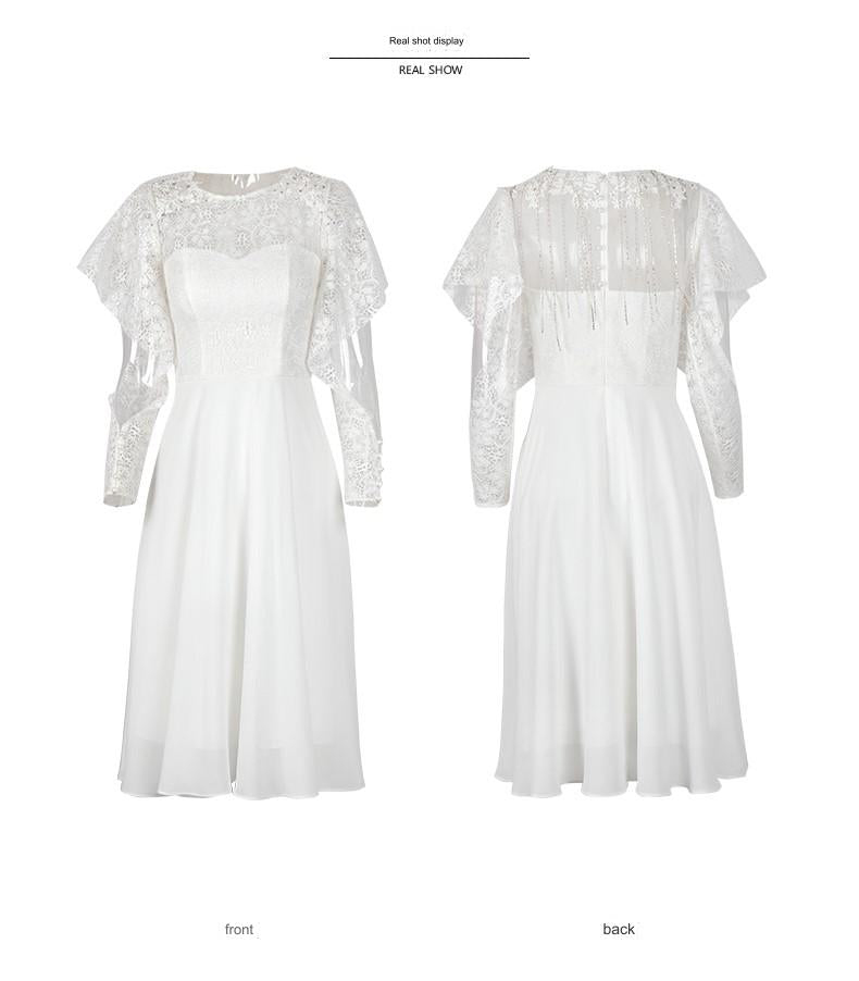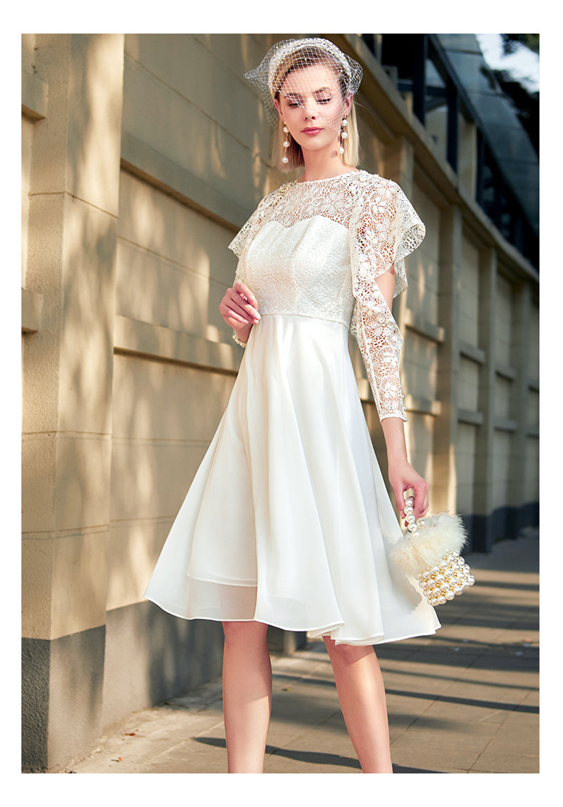 SIIDUO Elegant Spring long sleeves round neck white lace French style banquet dress-Caroline ( V )