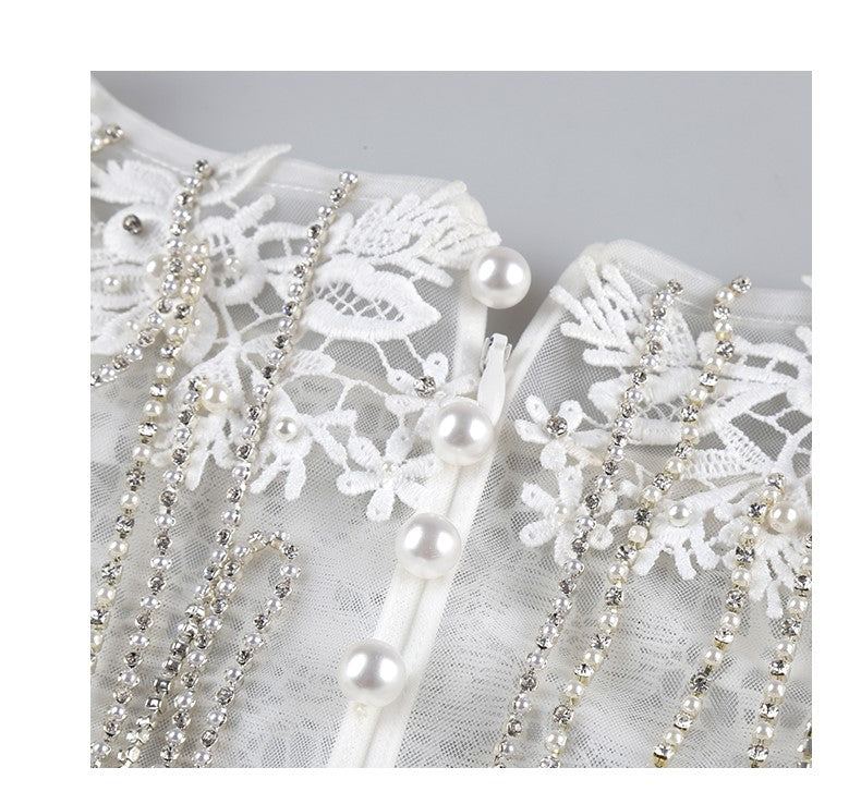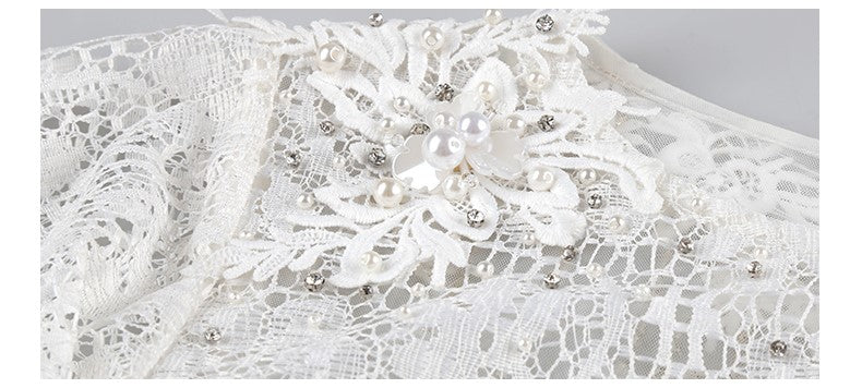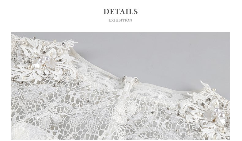 Indulge in the ultimate luxury with SIIDUO's Elegant Spring long sleeves round neck dress. Featuring a chic and unique white lace design, this French-inspired piece exudes elegance and sophistication. Perfect for any special occasion or banquet, be the envy of the crowd in our Caroline dress.