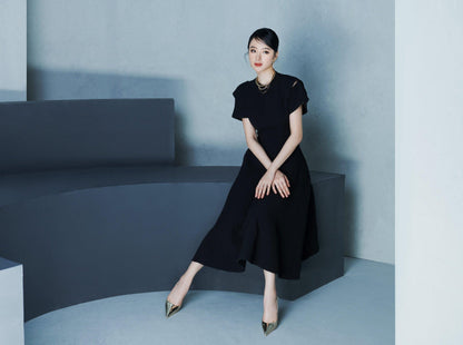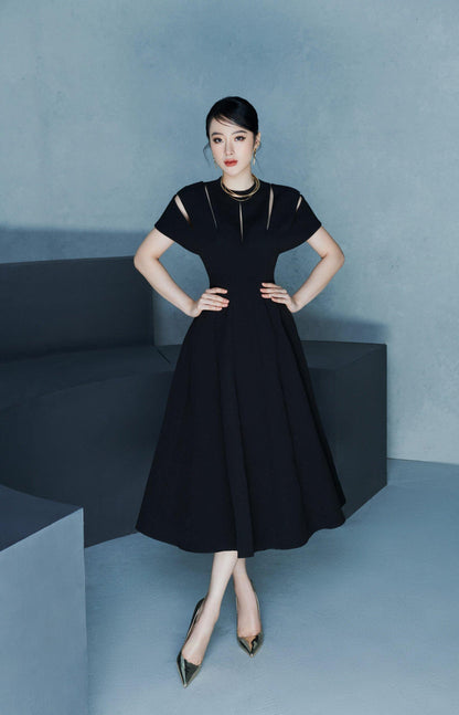 Black Slice Midi Dress-Ava