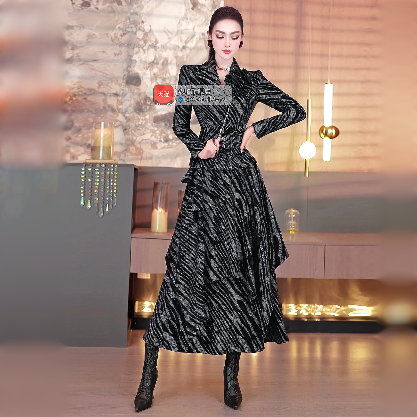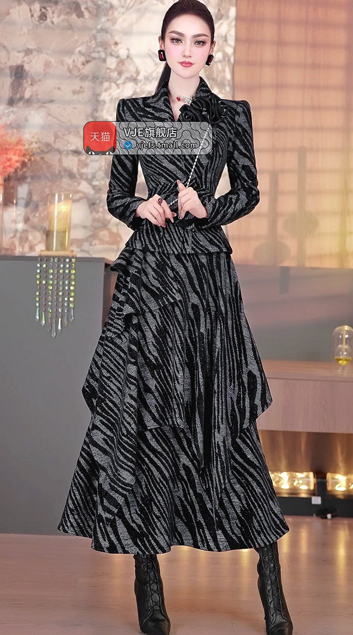 VJE zebra pattern suit skirt top irregular long skirt two-piece set- MONI.