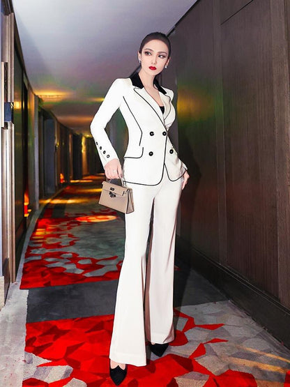 VJE spring black and white contrast double-row small suit jacket two-piece pants suit - Boda