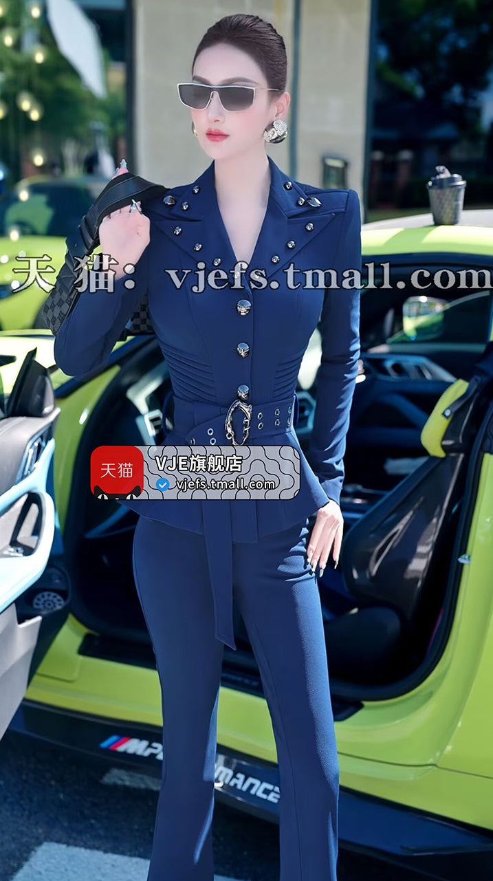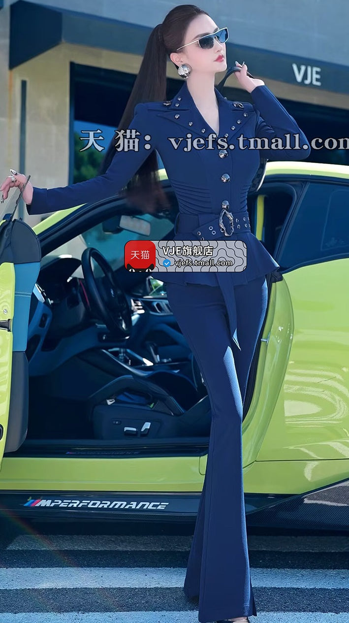 VJE Suit New Small Skirt OL Jacket Micro Flared Pants Two-Piece Set-HIHI