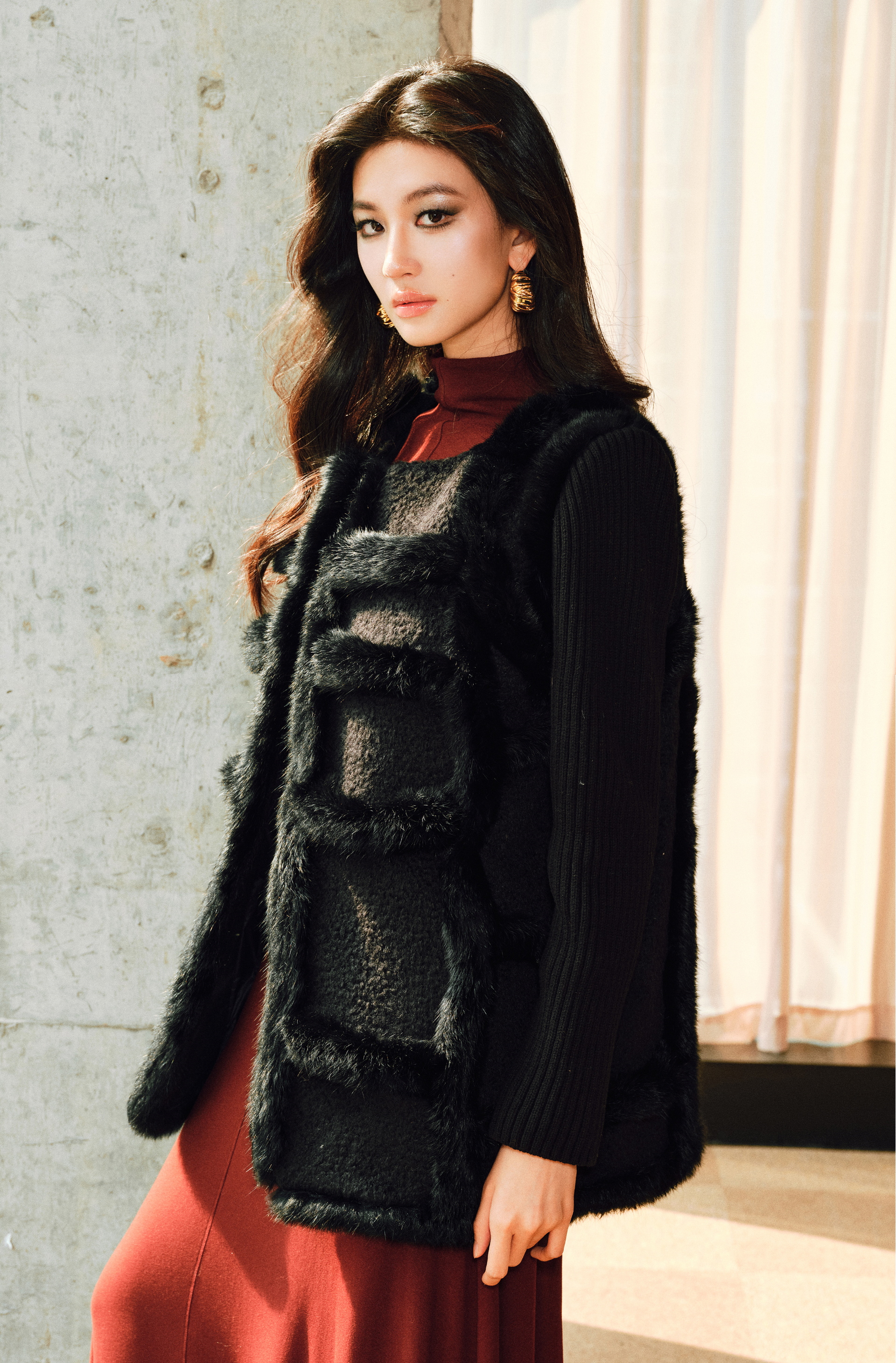 WANGXO | Heavy Industry Wavy Wool Tweed & Rabbit Fur Jacket-SENA.
