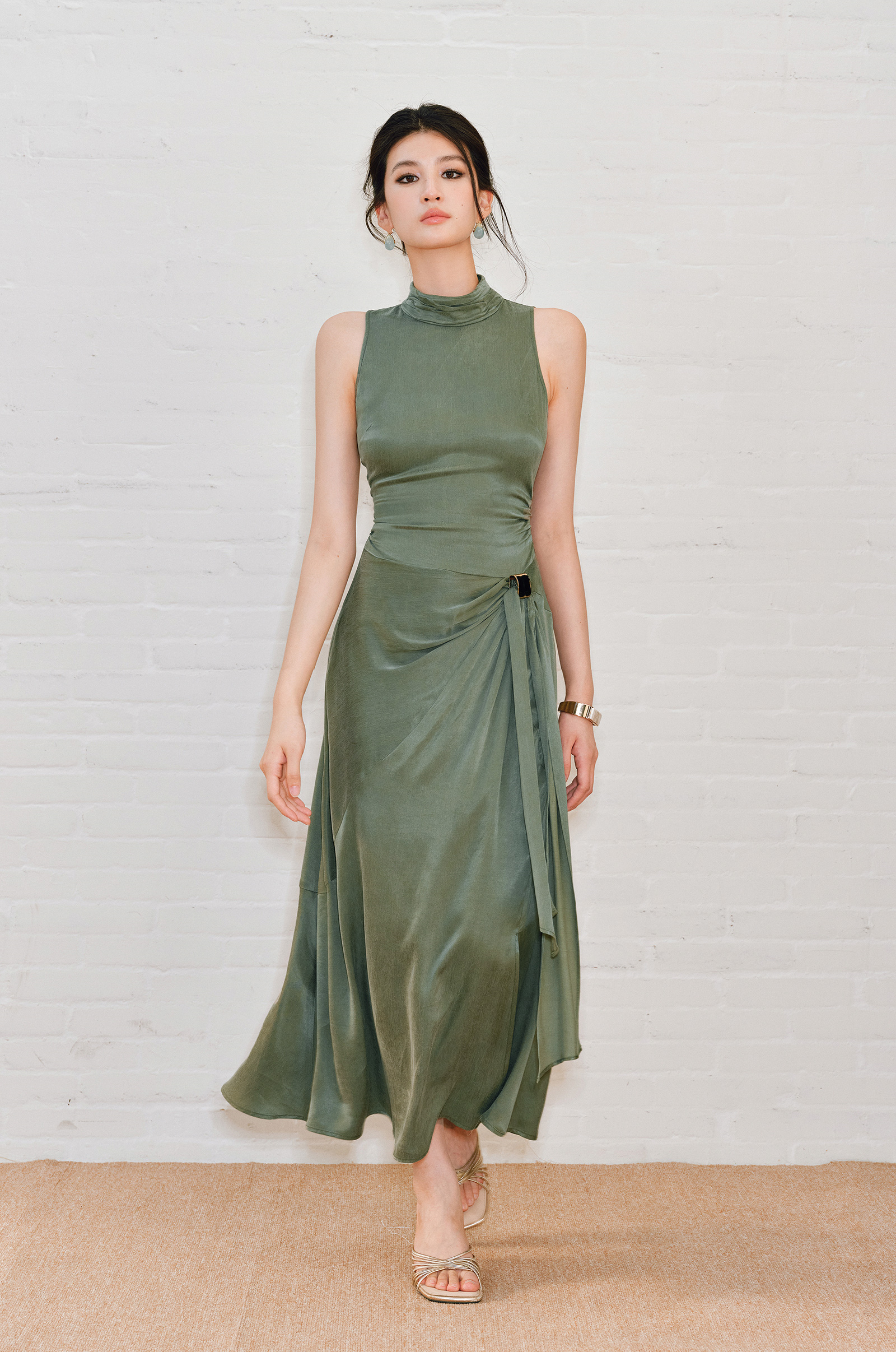 WANGXO | Luxe Cupro Maxi Sleeveless Drape Dress -ISOLINA.