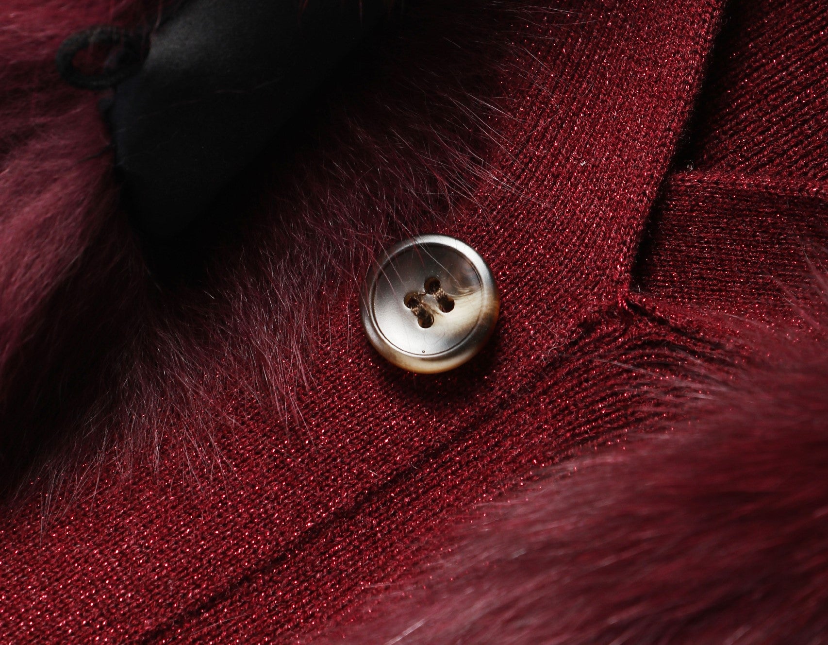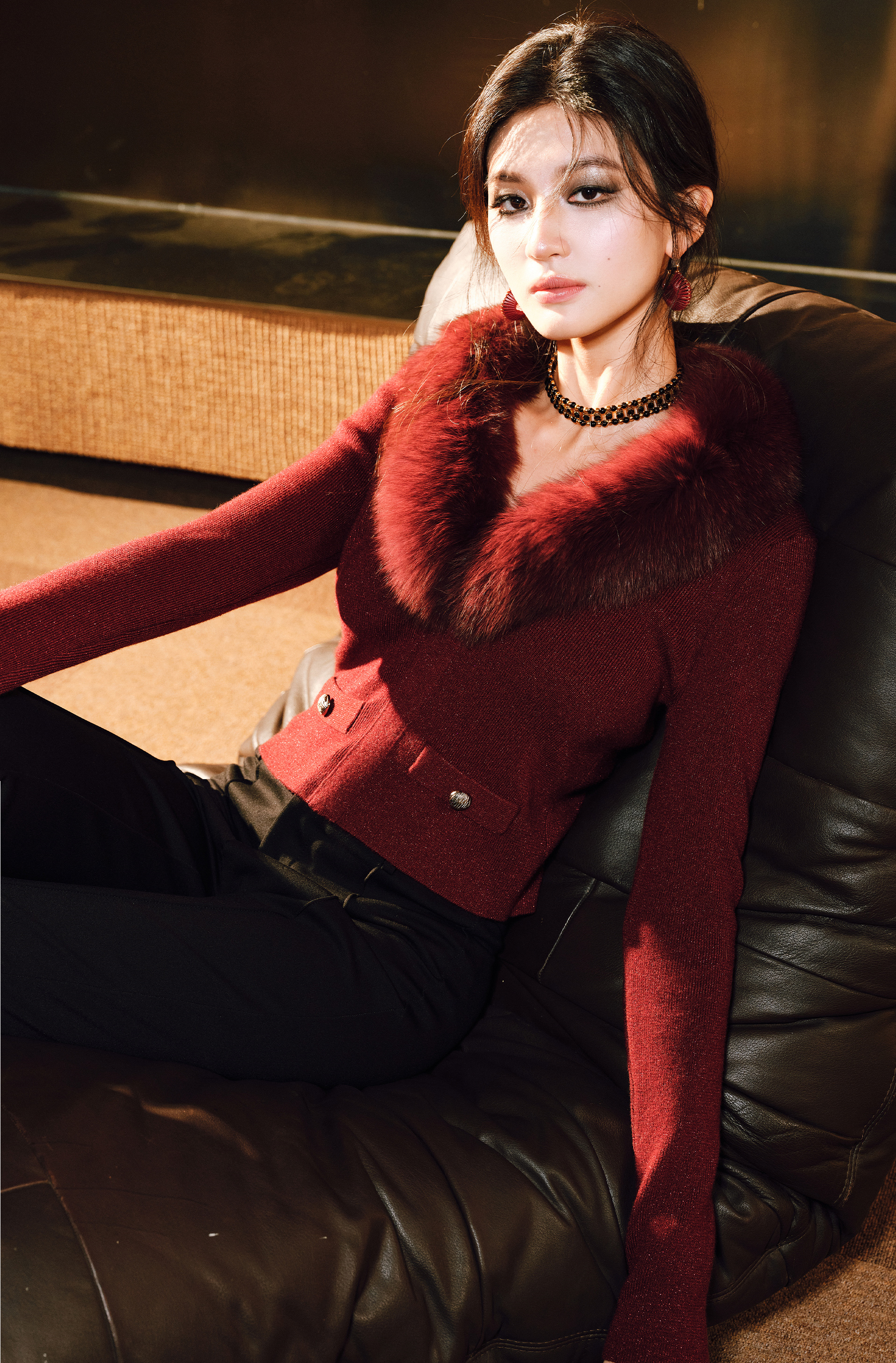 WANGXO | Luxury Wool Fixed Dyeing with Detachable Fox Fur Collar Knitted Top- JUNE.