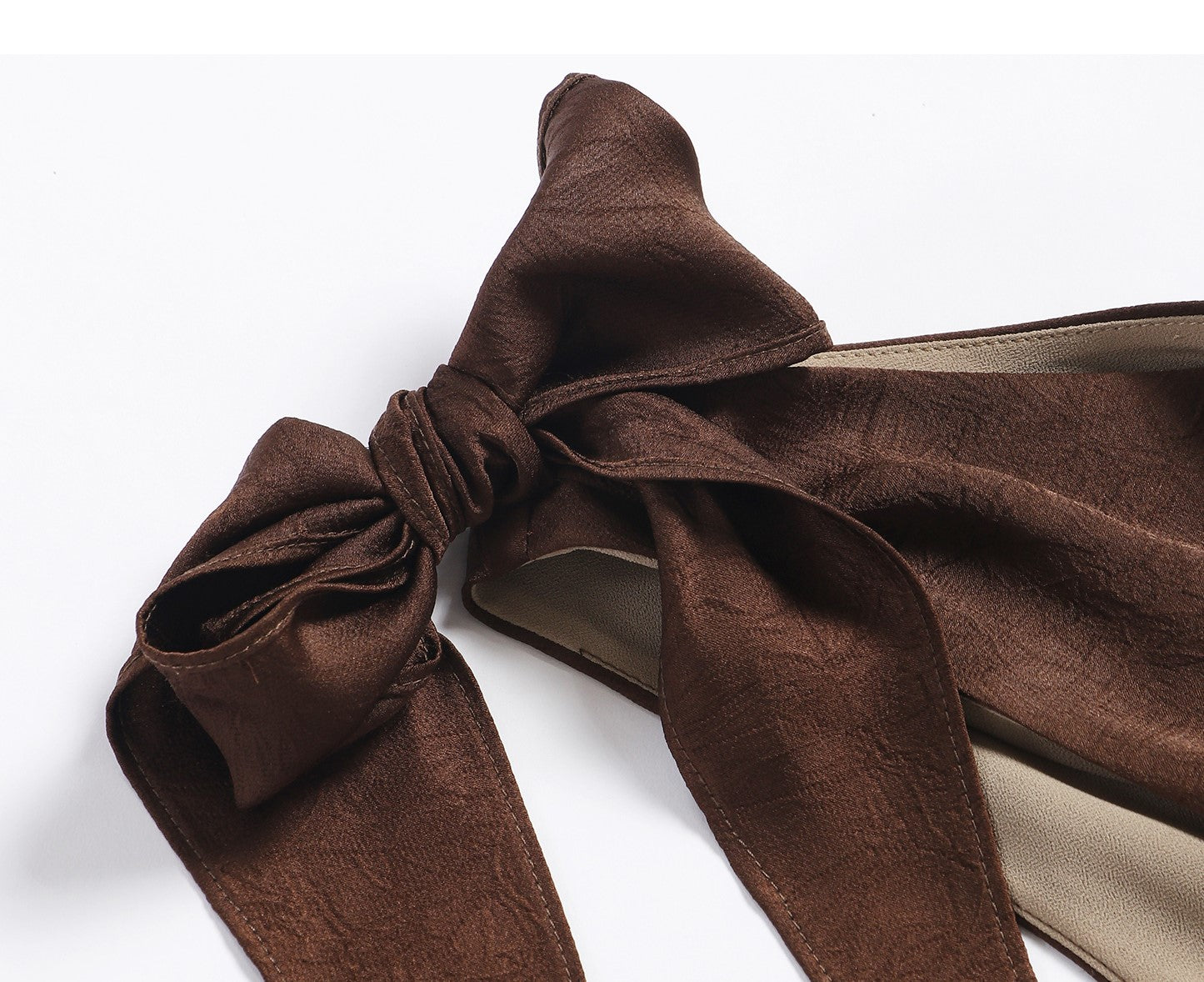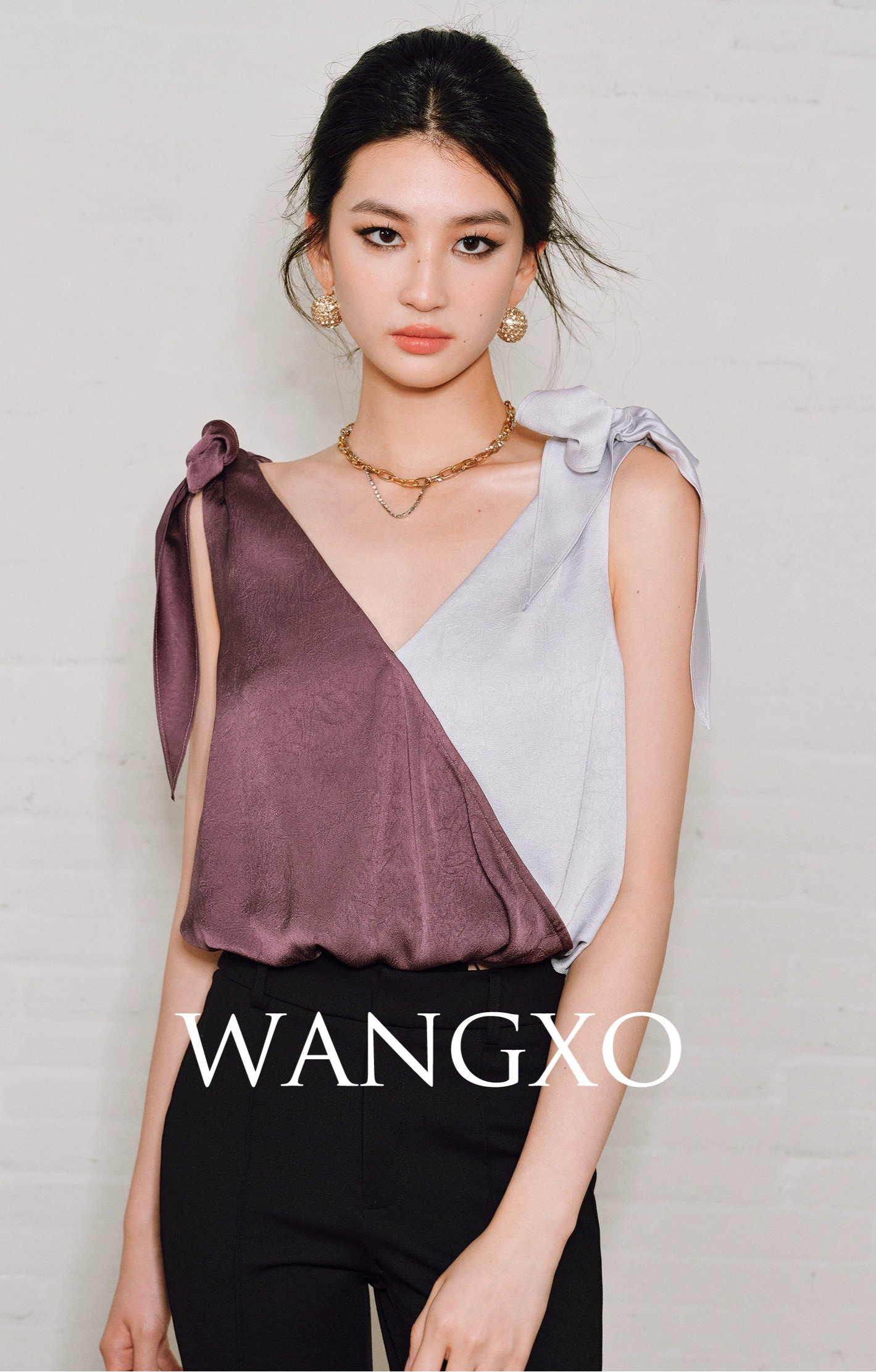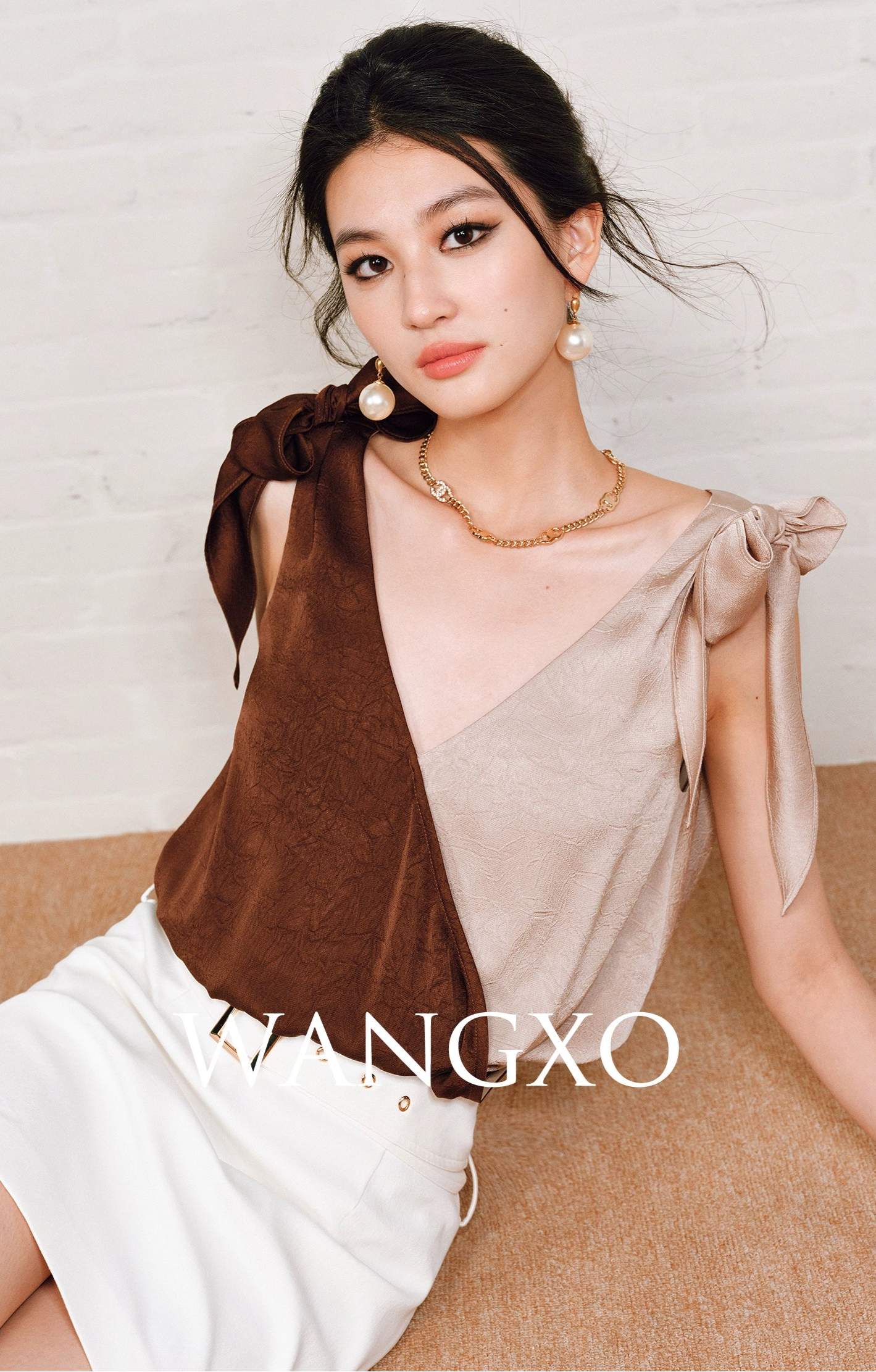 Elevate your wardrobe with the WANGXO Reversible Scratched Satin Charm Crossover V-Neck Dual-Wear Top. Crafted from satin with a subtle textured sheen, this elegant piece offers versatile styling with its reversible design and chic crossover V-neckline. Perfect for sophisticated day-to-night looks.