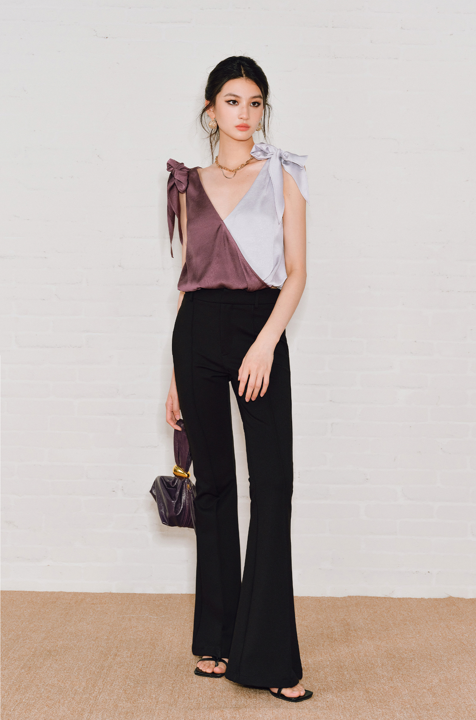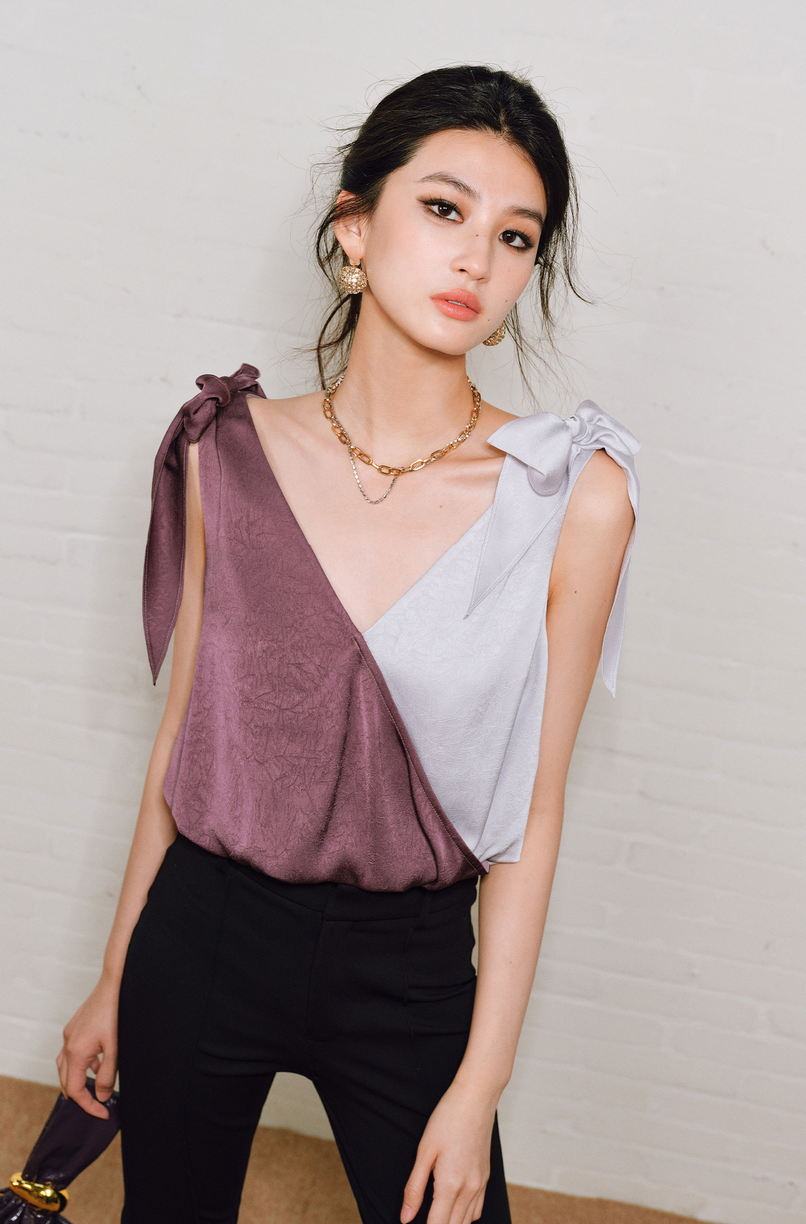 WANGXO | Satin Crossover V-Neck Dual-Wear Top -VIOLETTA.