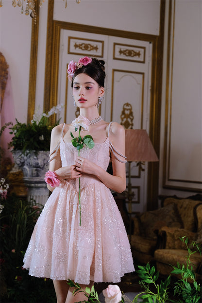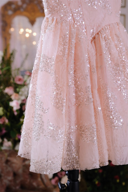Wardrobes by Chen Coral Pink Sleeveless Sequin cocktail Dress-Miya