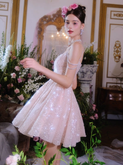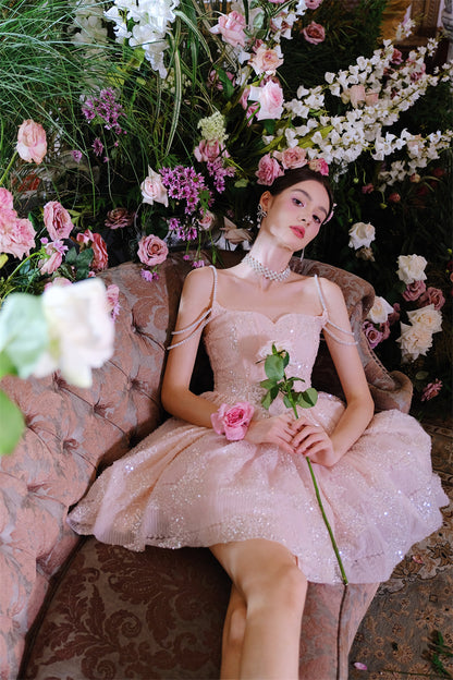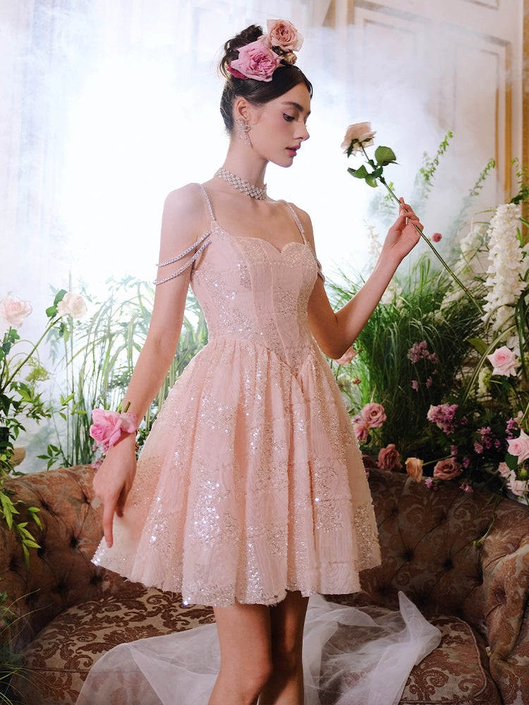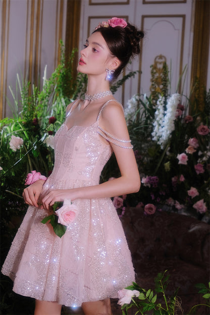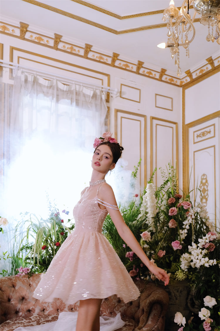 Indulge in pure luxury with our Wardrobes by Chen Coral Pink Plain Sleeveless High Waist Sequin Short Dress-Miya. This elegant dress exudes sophistication, perfect for any upscale event. The high waist design flatters every figure while the sequin embellishments add a touch of glamour. Elevate your style with our exclusive dress.
