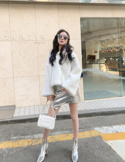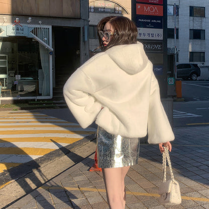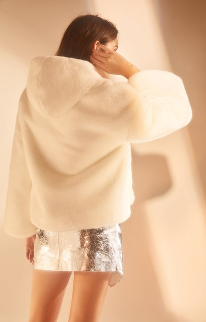 Wardrobes By Chen Elegant Cream Long Sleeve Thick Crop Hoodie Jacket-Sara