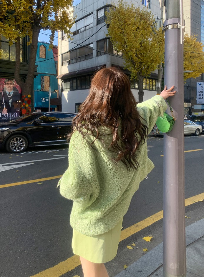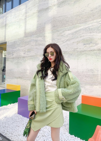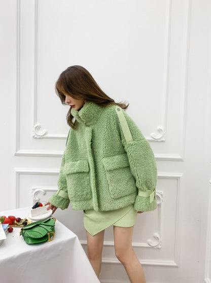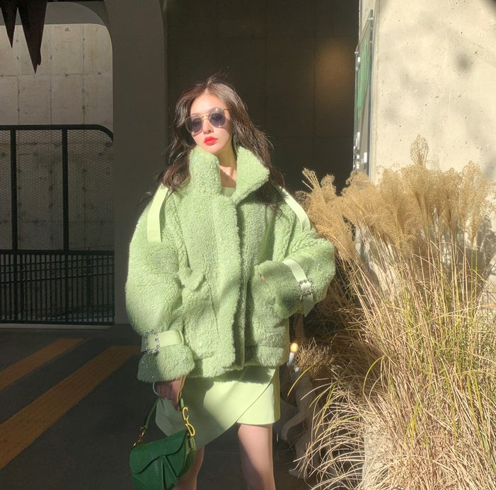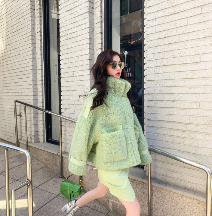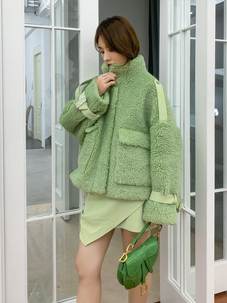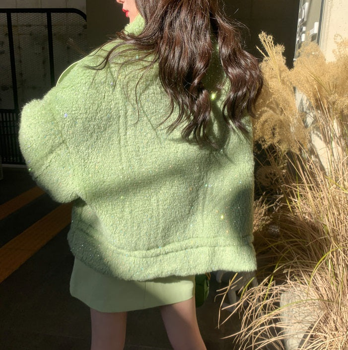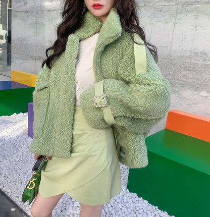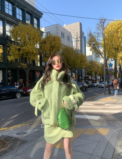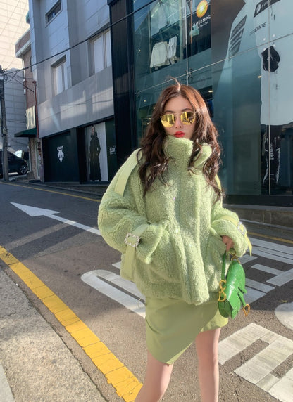 Wardrobes by Chen Elegant Deep Green Stand Collar Long Sleeve Thick Jacket-Pamela