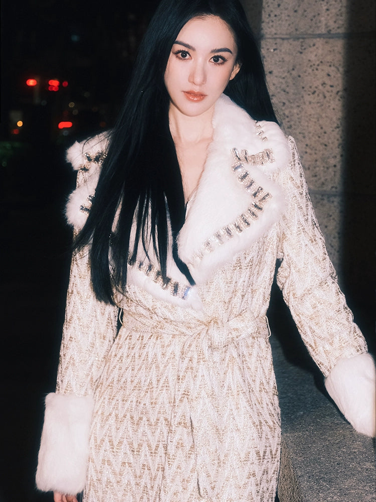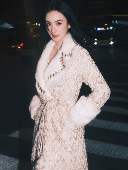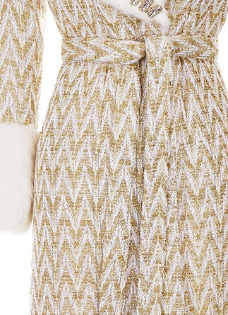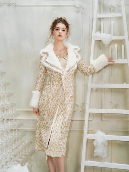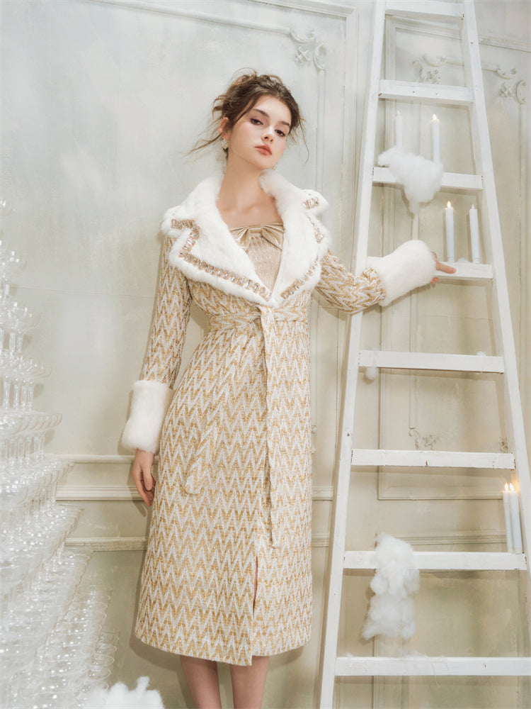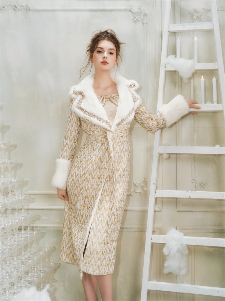 Wardrobes By Chen Elegant Gold Long Sleeve Woolen Coat-Spring
