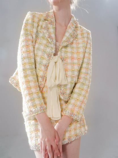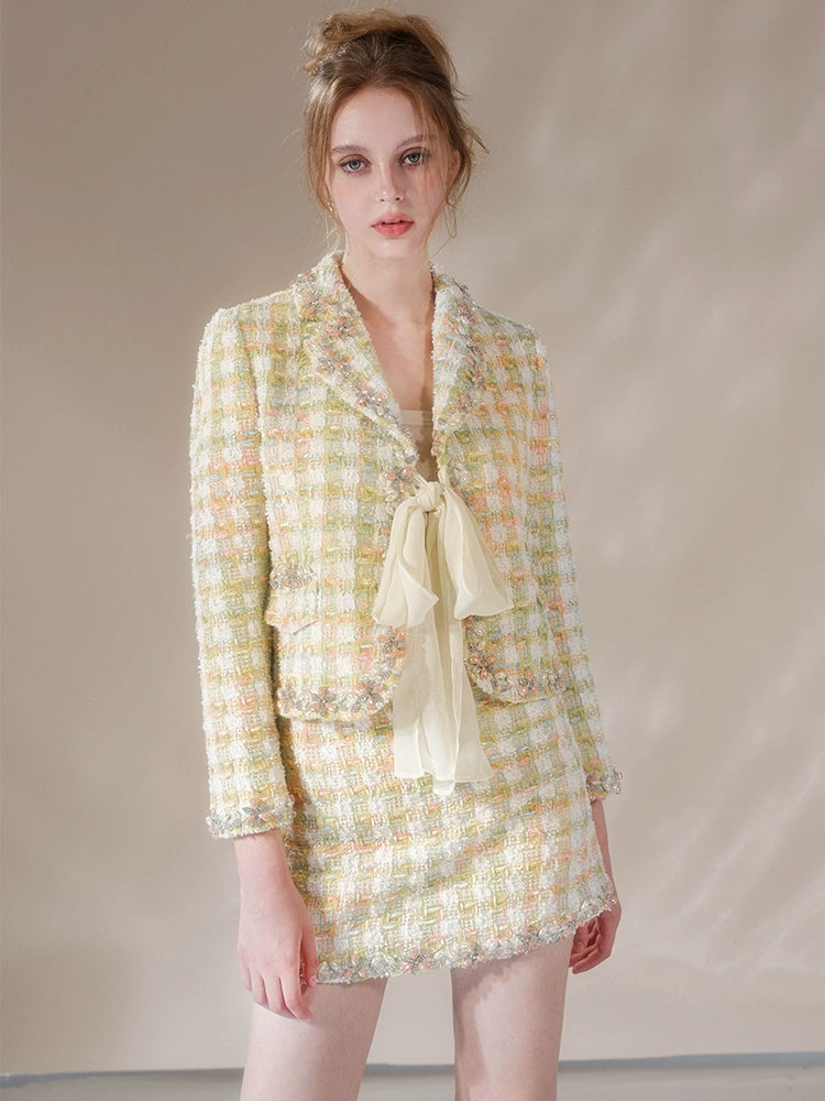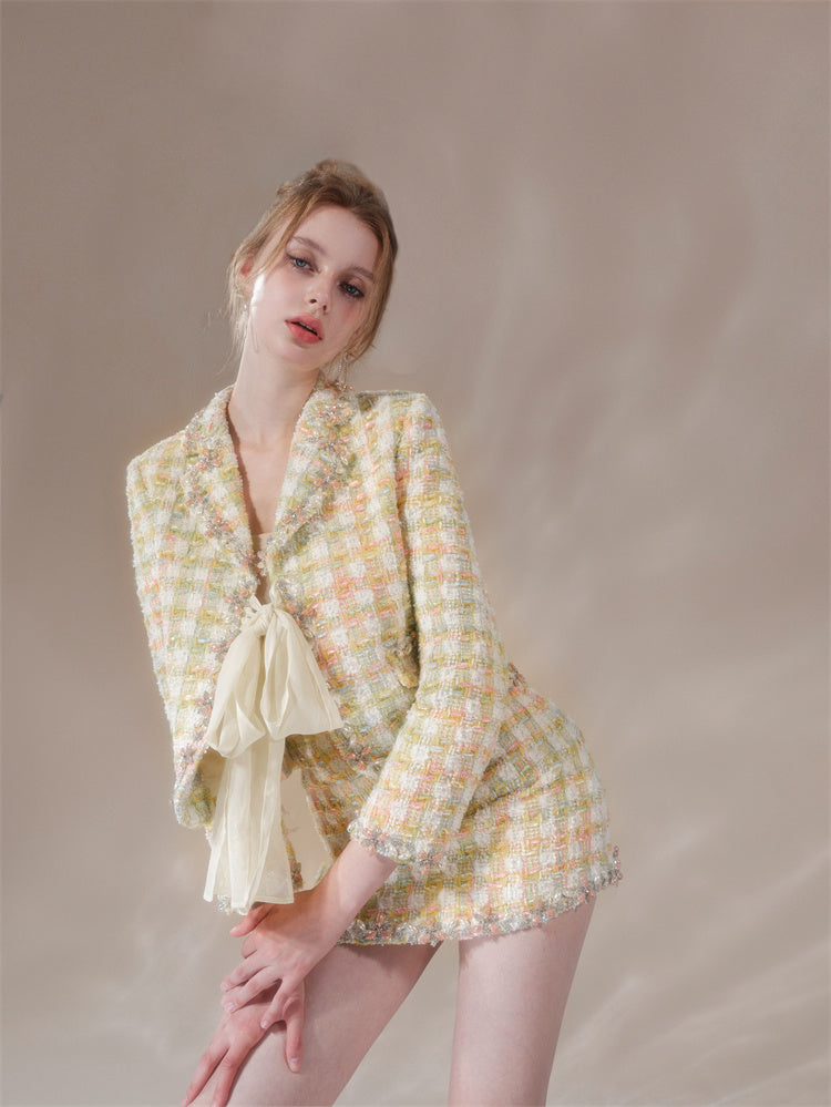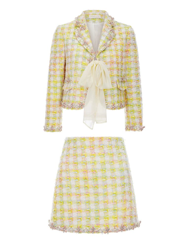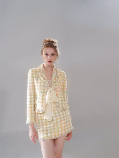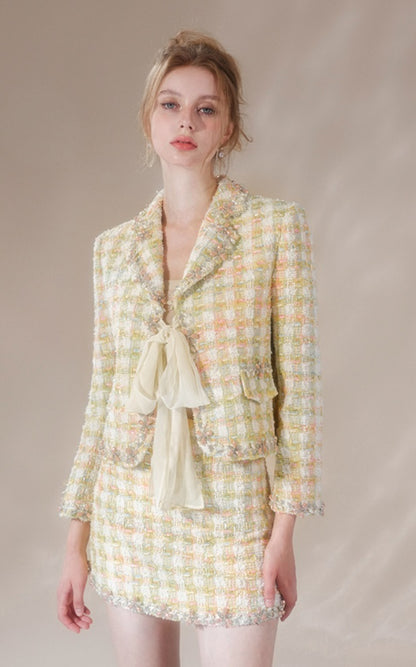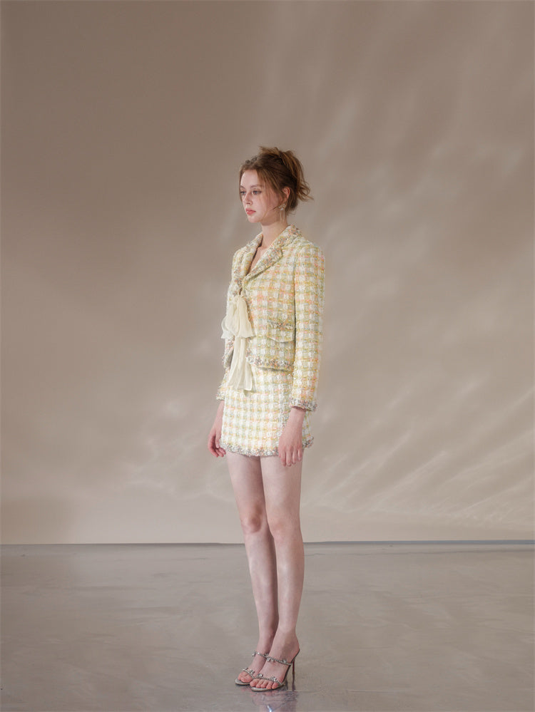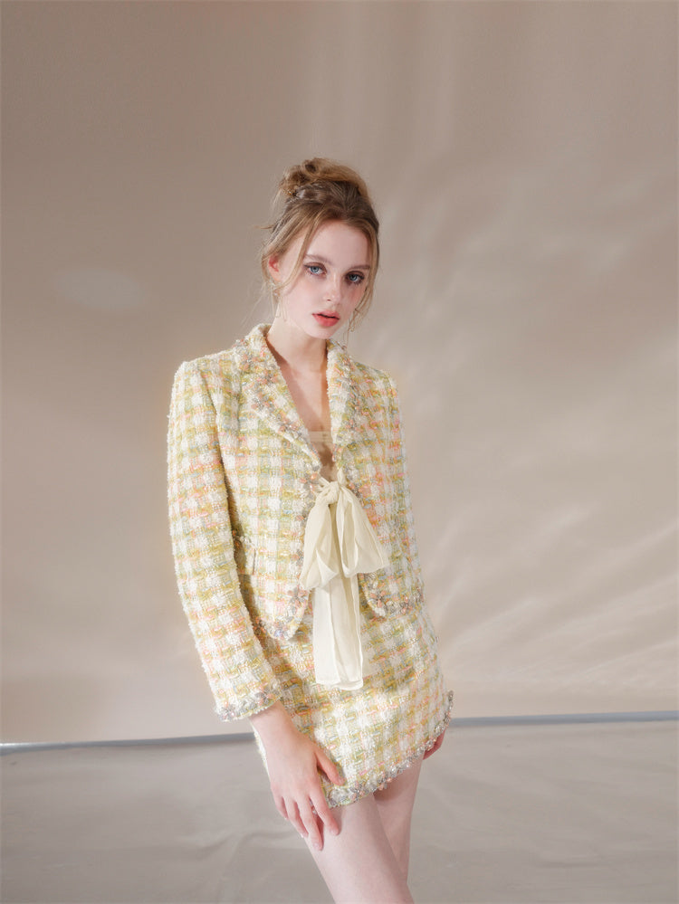Wardrobes by Chen High End Yellow Long Sleeve Short Jacket/Short High Waist Skirt-Praise