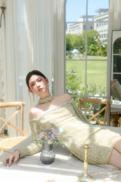 Indulge in luxury with our Wardrobes by Chen Beaded Diamond Dress. Its long sleeves and short length exude elegance, while its intricate beading adds a touch of sensuality. Perfect for a night out, this dress will make you stand out in style. Elevate your wardrobe with LARA.