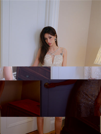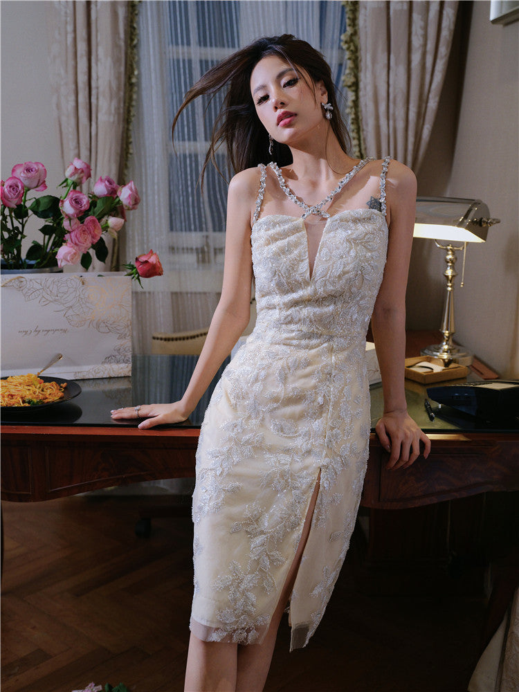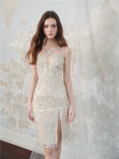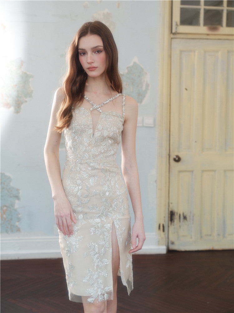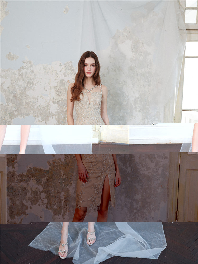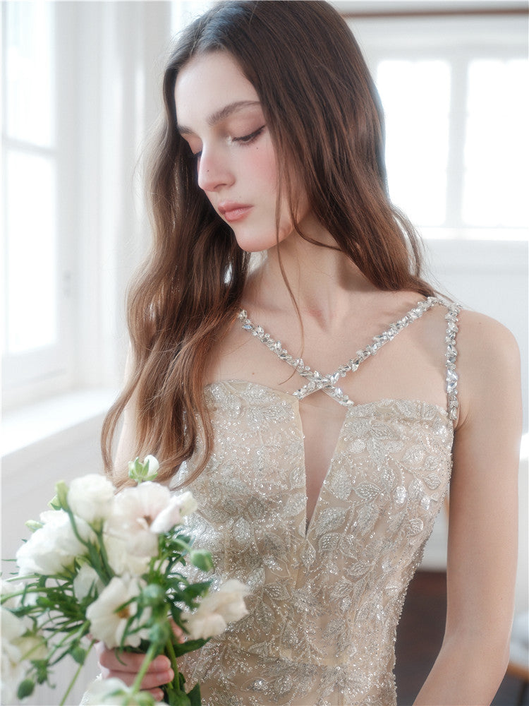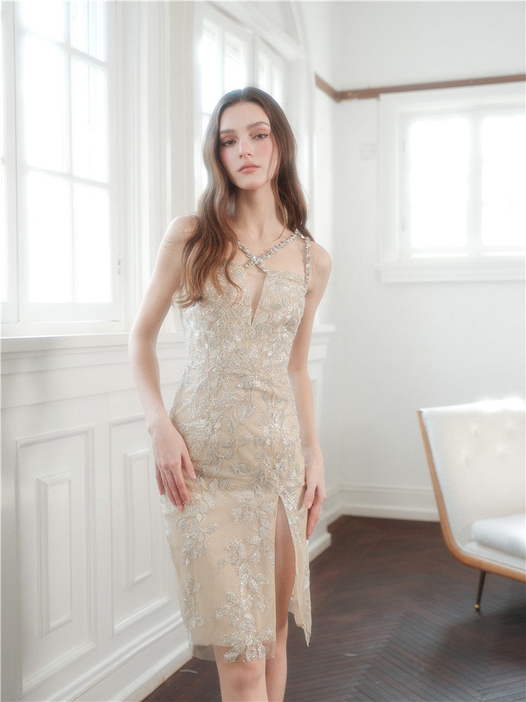 Wardrobes by Chen Luxury Gold Sleeveless Diamond Strap Dinner Dress-Dorei