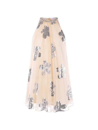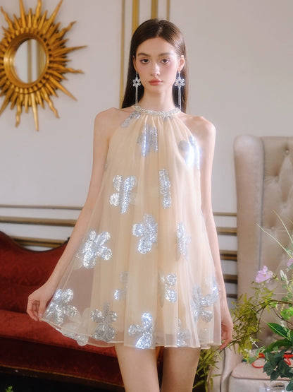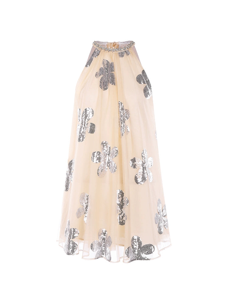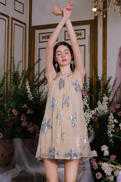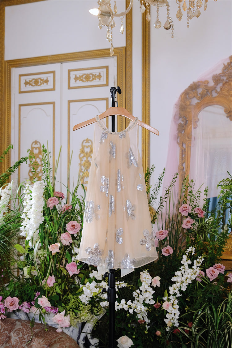 Wardrobes by Chen Luxury beige Flower Sequin Embroidered doll Party Dress-Udoh