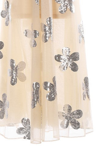 Wardrobes by Chen Luxury Nude Hanging Neck Sequin Loose Vacation Dress- Baiey