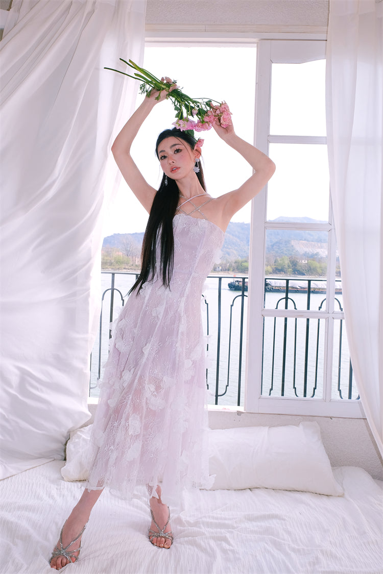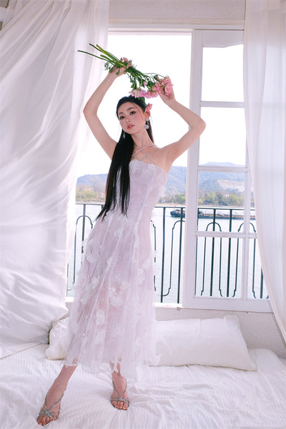 Wardrobes by Chen Luxury Sleeveless Flower Embroidered Dress-Hannah