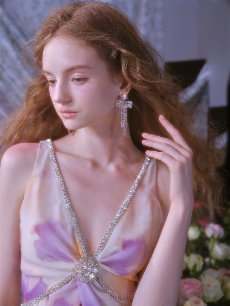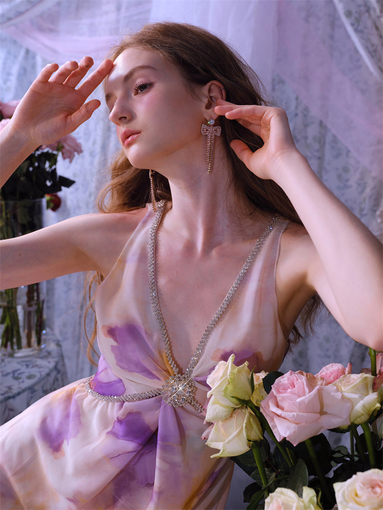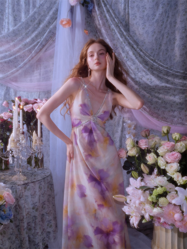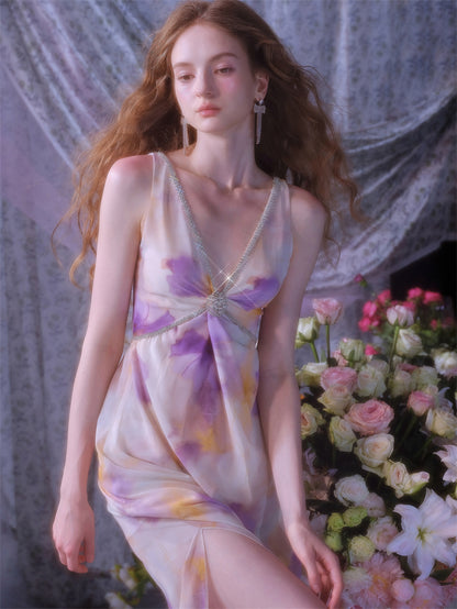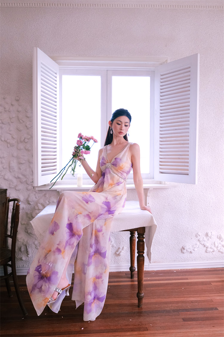 Wardrobes by Chen Luxury V-Neck Sleeveless Oil Painting Slit Long Resort Dress-May