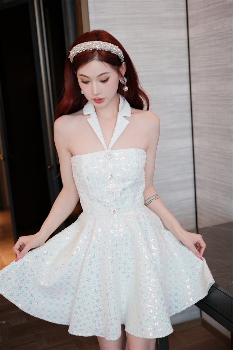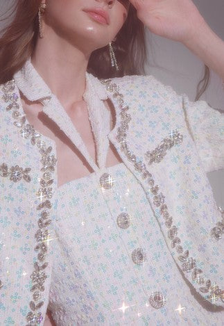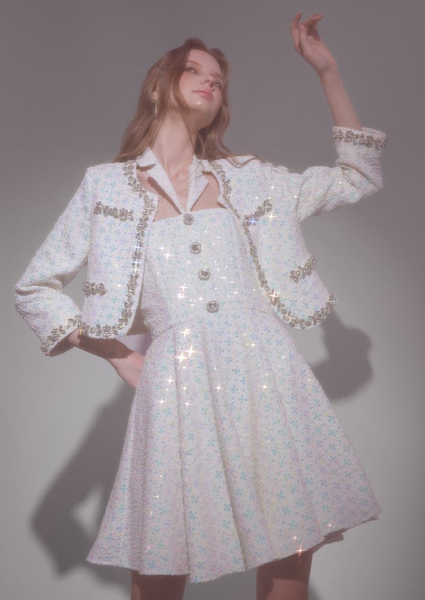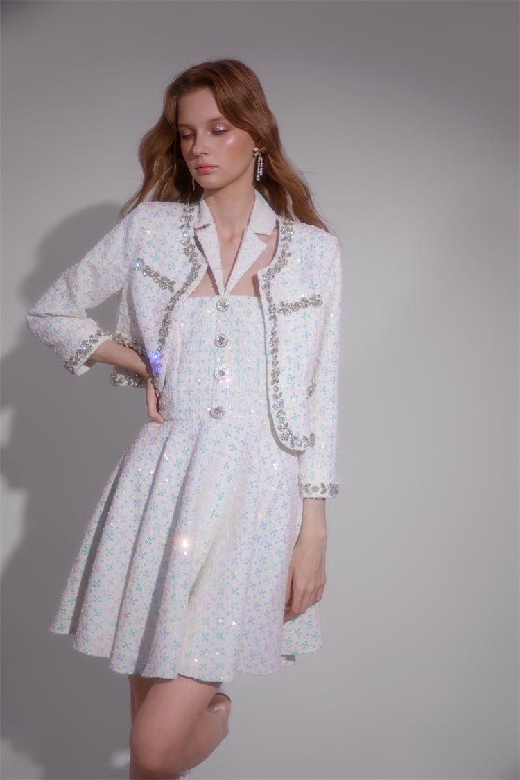 Wardrobes by Chen Luxury White Jacket/Sleeveless Embroidery sequin tweed Dress-Khris