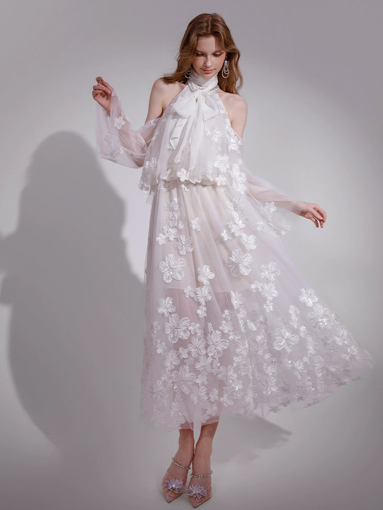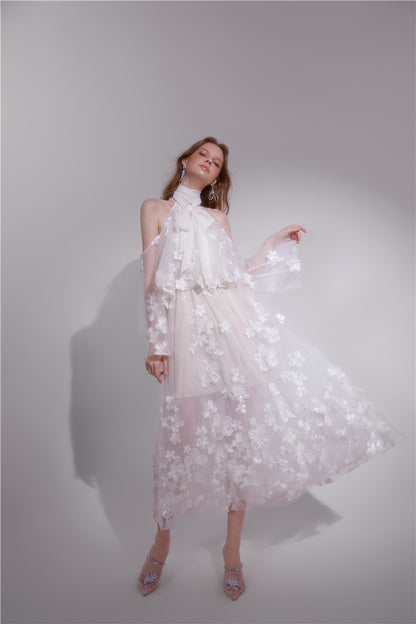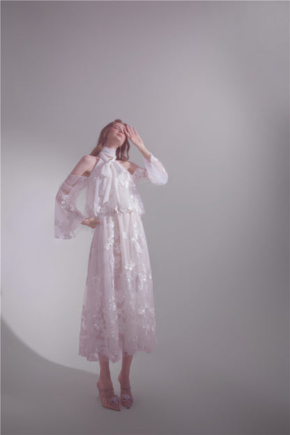 Wardrobes by Chen Luxury White Off Shoulder midi bridal Wedding Lace Dressv-Sisi