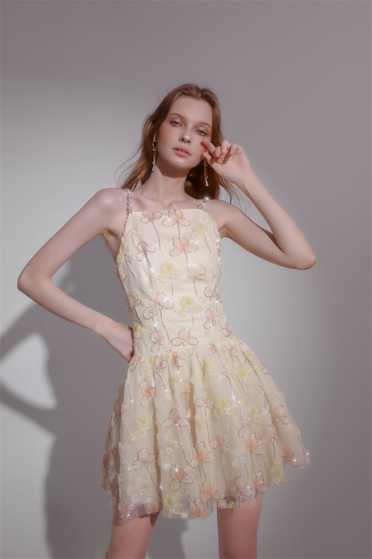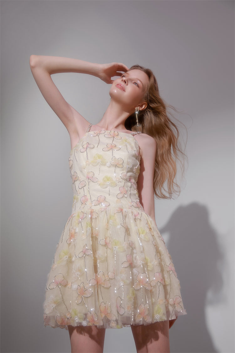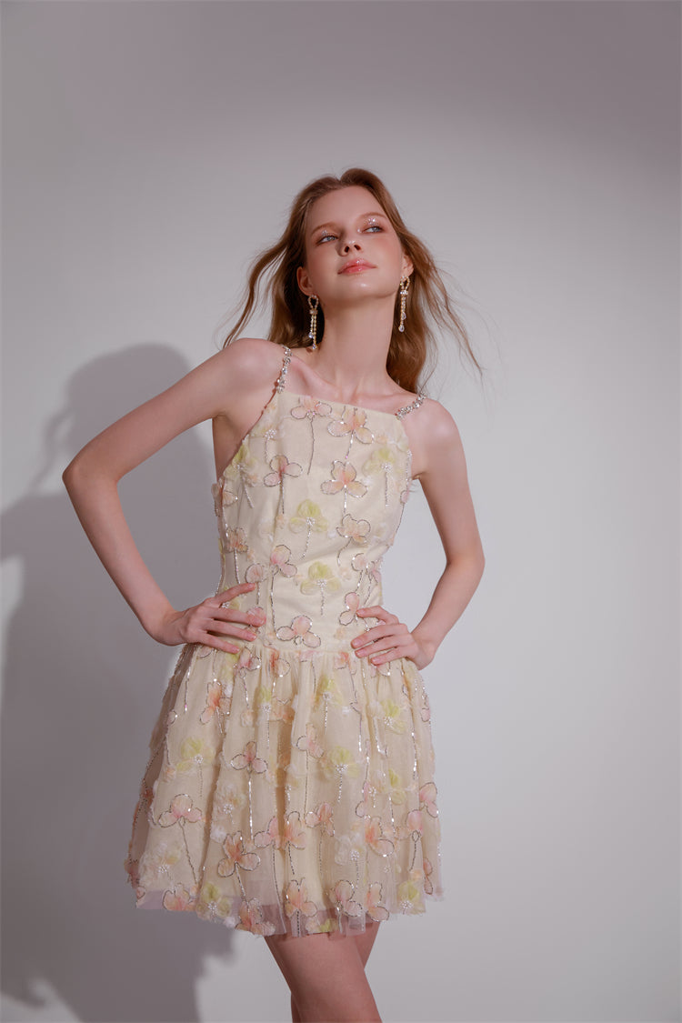 Indulge in luxury with the Wardrobes by Chen Yellow Sleeveless Low Waist Pleat Short Dinner Dress-Zanny. This chic and adorable dress boasts exquisite pleats and a low waist design, perfect for any dinner event. Elevate your style and stand out with this exclusive piece.