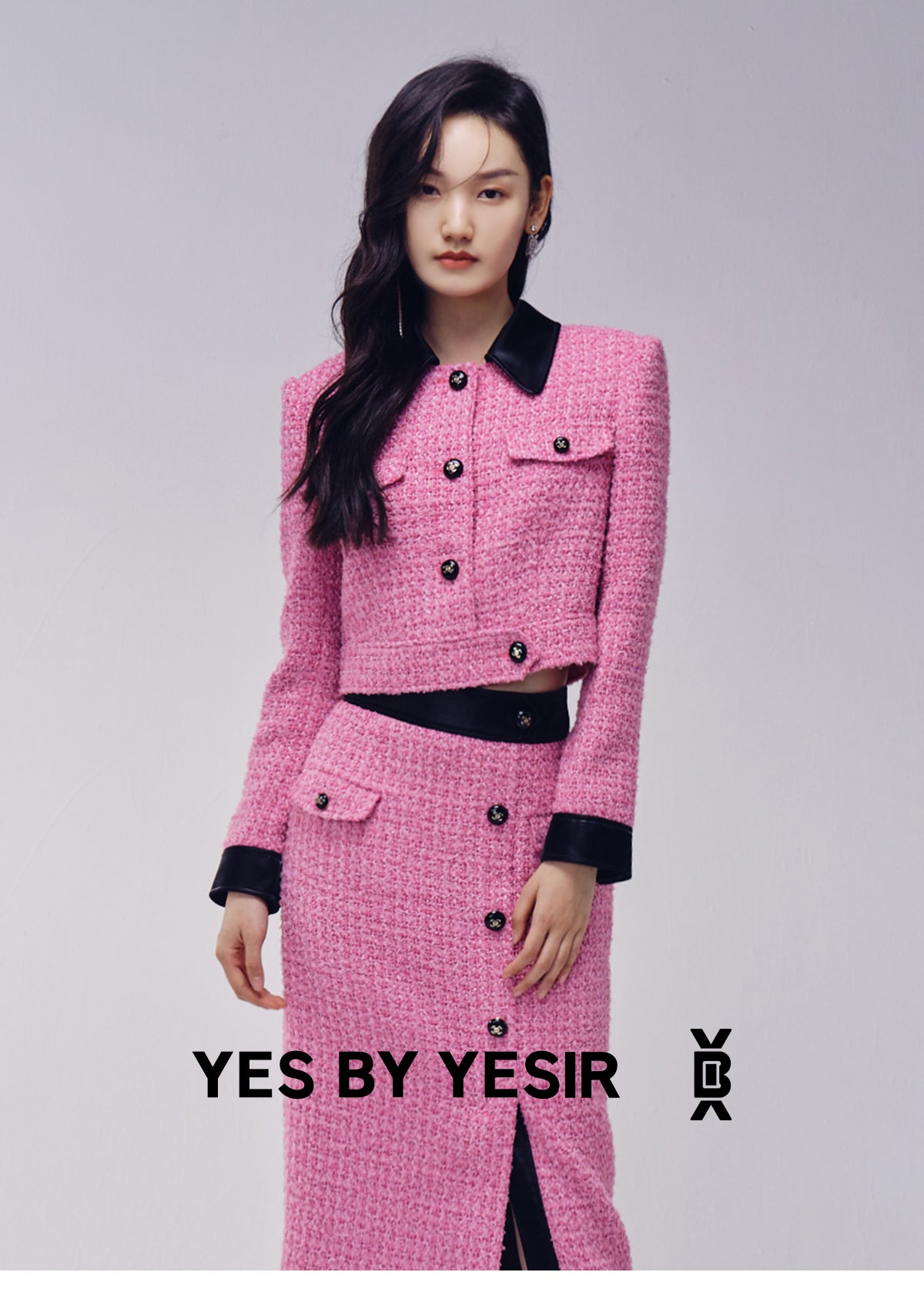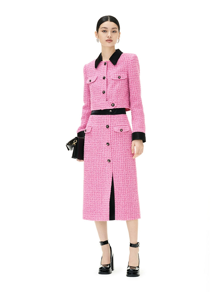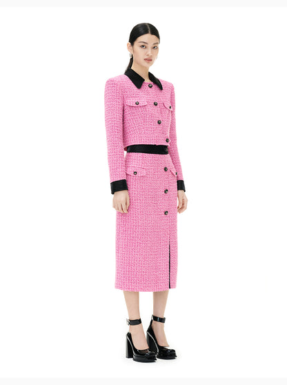YES by YESIR Barbie pink autumn winter short jacket mini pencil skirt- Tiggan