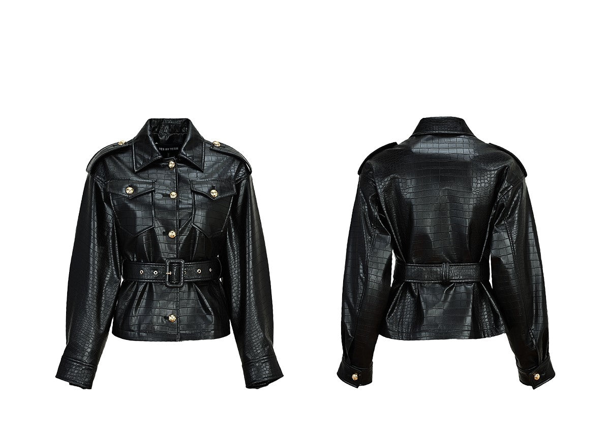 YES BY YESIR Crocodile leather short black jacket and skirt Set - SHIVER.
