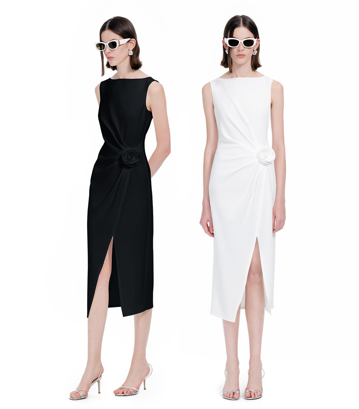 The YES BY YESIR Amariel dress, a standout selection by Wang Ziwen & Guan Xiaotong from Ye Qian’s collection, features exquisite 3D floral detailing with sculpted petals enhancing a sophisticated slit silhouette. This elegant design delivers statement grace through its artful craftsmanship and refined structure, making it an ideal choice for occasions that demand both beauty and poise.