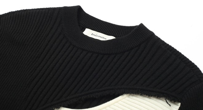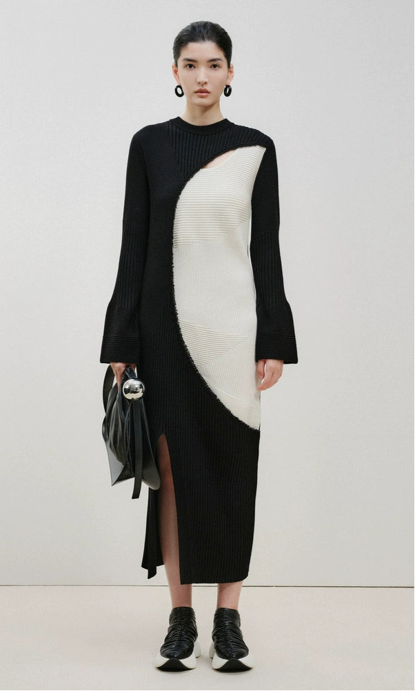 ZHUCHONGYUN Color Blocking Design Long Skirt Knitted Dress-STAN.
