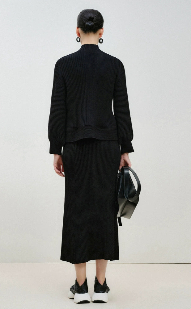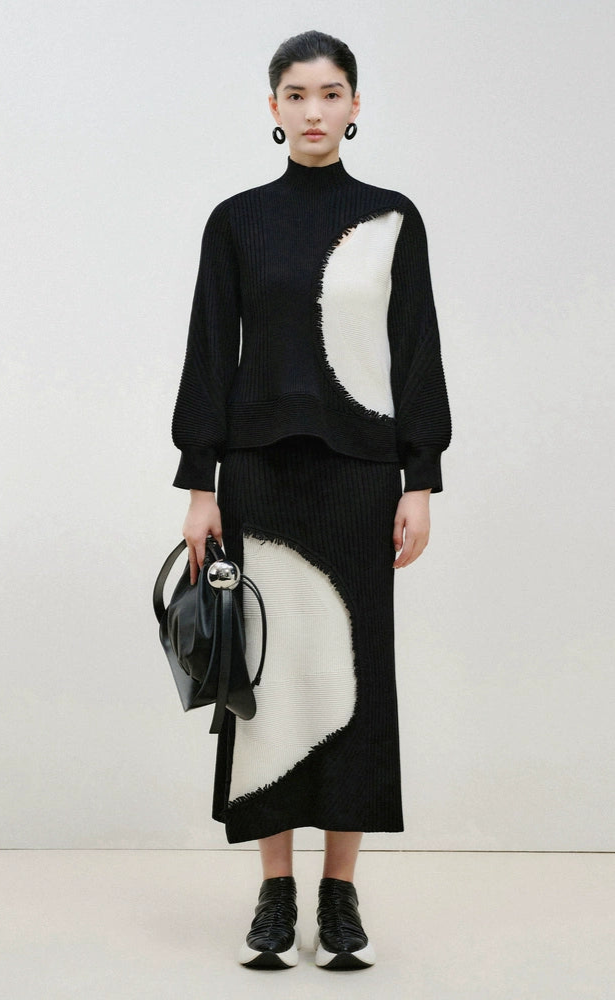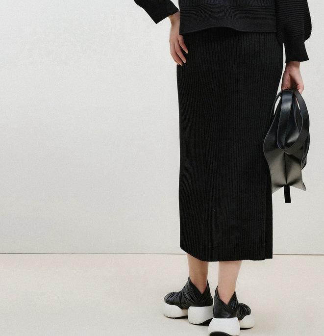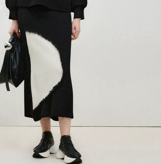 ZHUCHONGYUN New Chinese Color-Blocking A-Line Stretch Knit Skirt--OXYGUN.