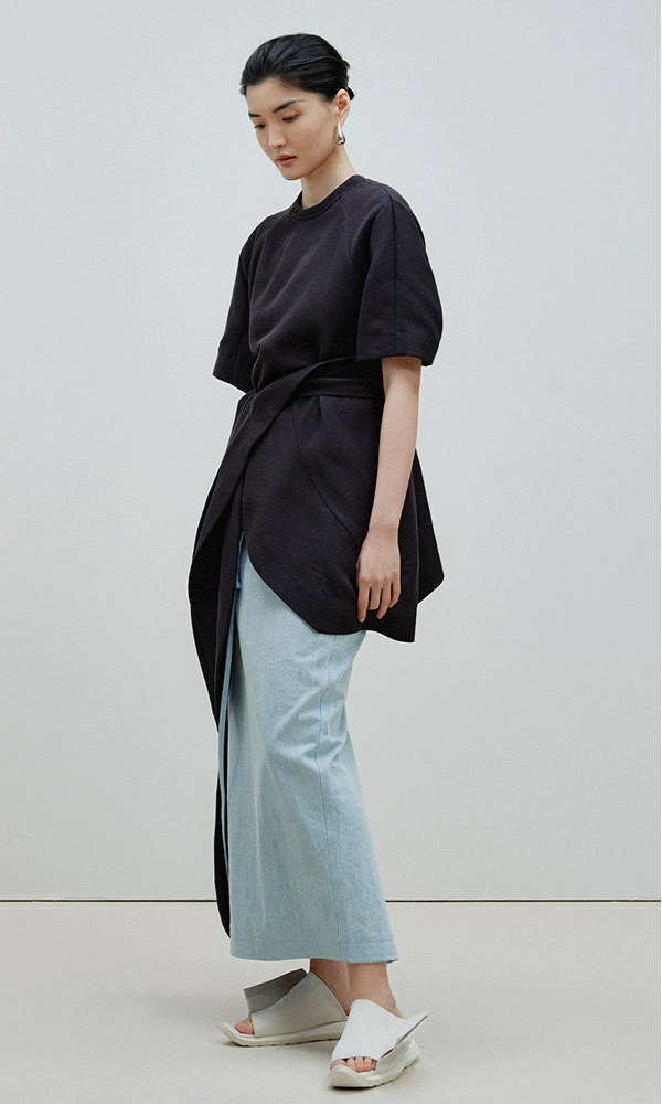 ZHUCHONGYUN summer blue belt loose straight length denim skirt-SOMA.