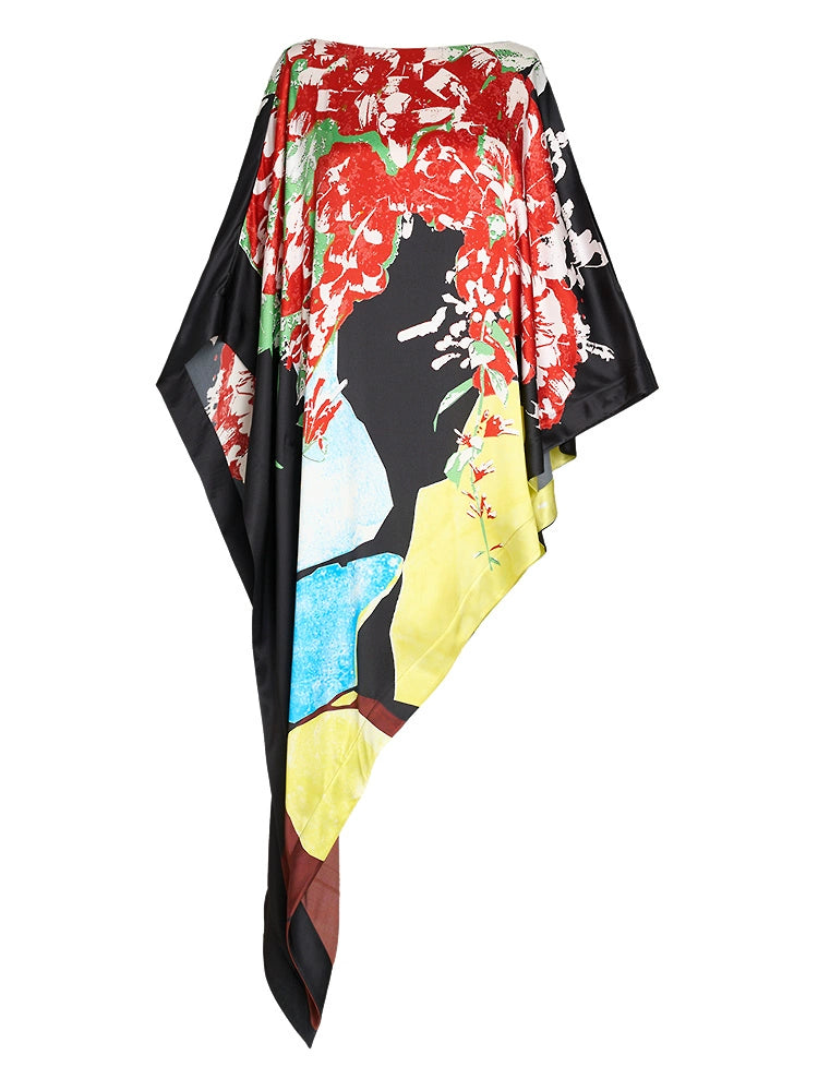 ZHUCHONGYUN summer Chinese cape style loose silk printed top--YAKI.
