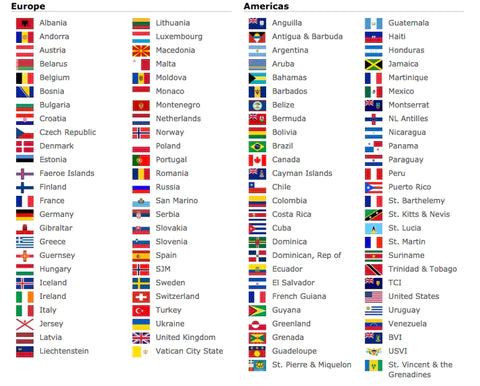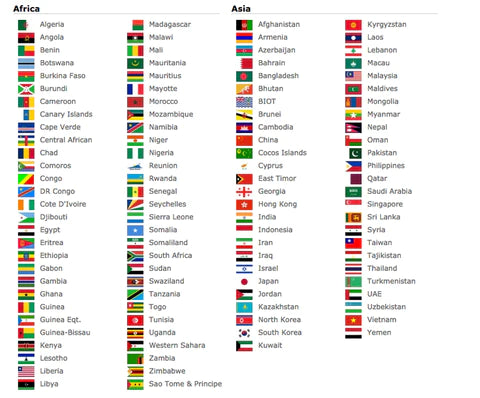 Covering North and South America, Europe, Asia, Africa, Oceania, and more.