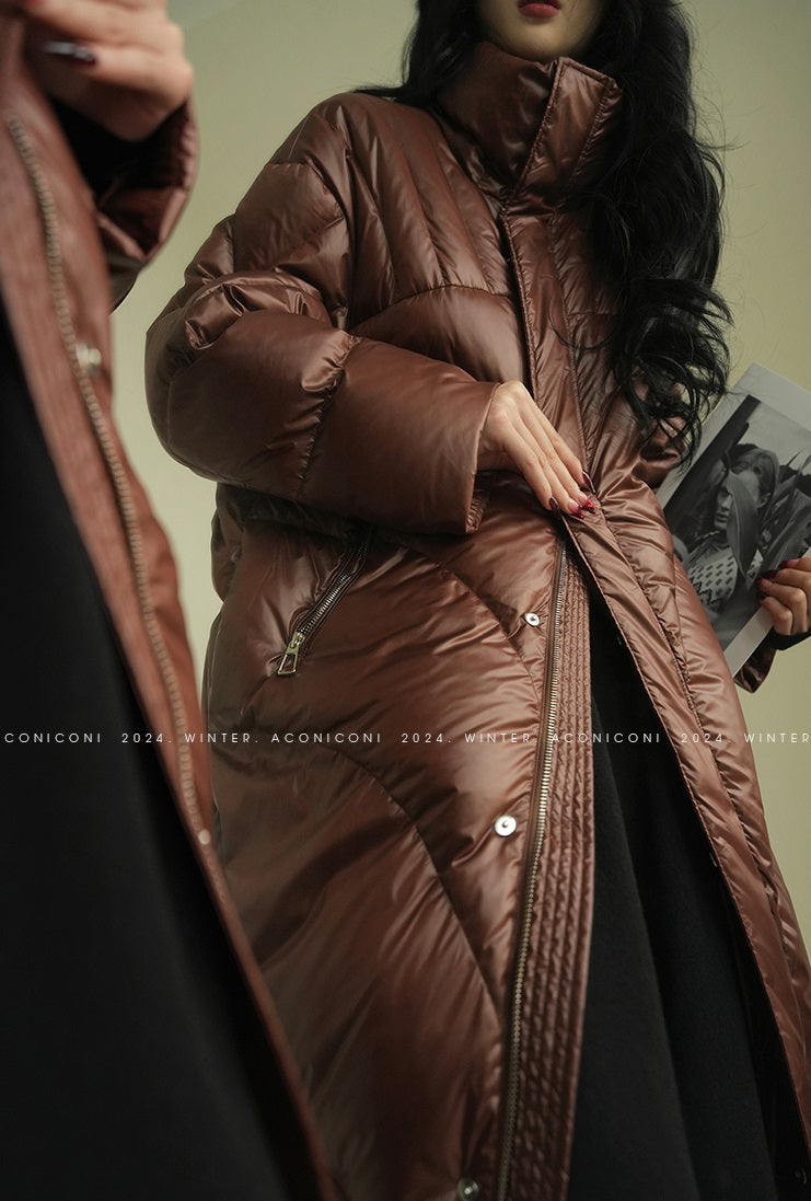 Aconiconi| chocolate Brown Vintage Premium Thickened Over-the-Knee Extra Long Jacket-KATE