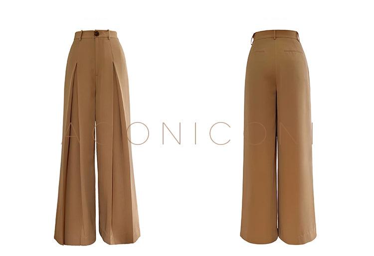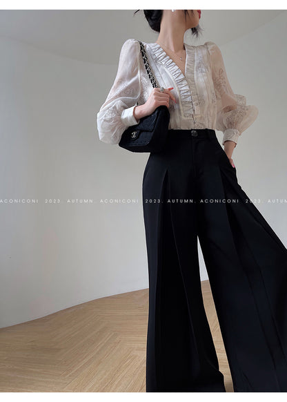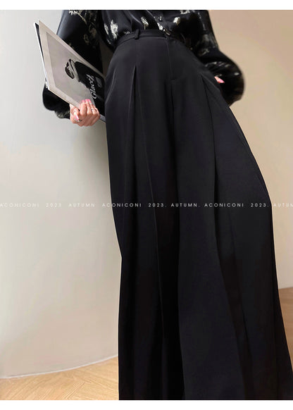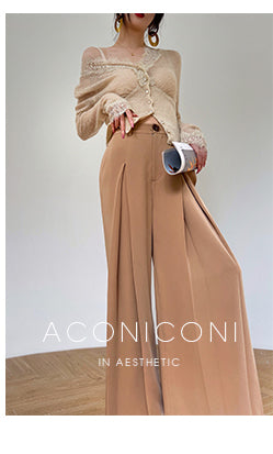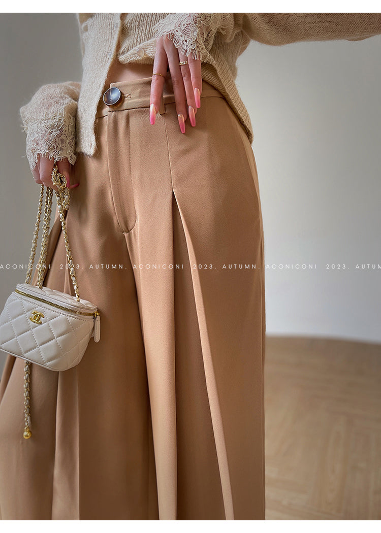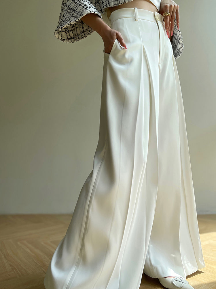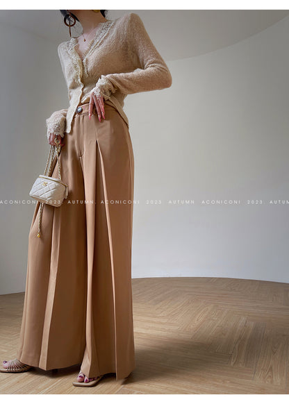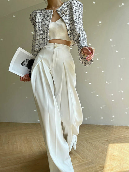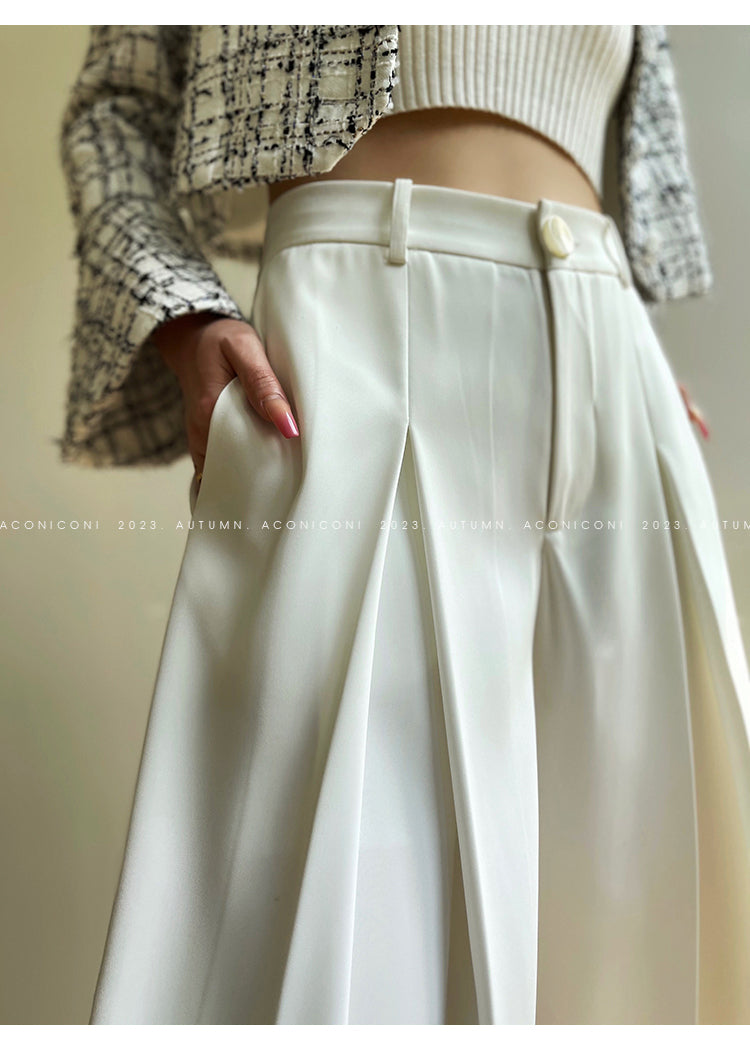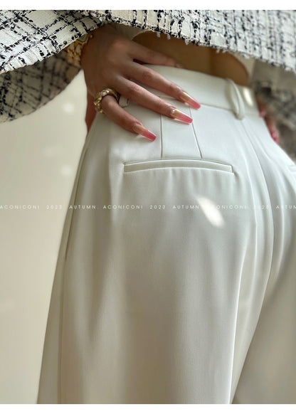 Aconiconi Eleant White Waist Loose Long Straight Suit Dinner Pants- Cloud Steps