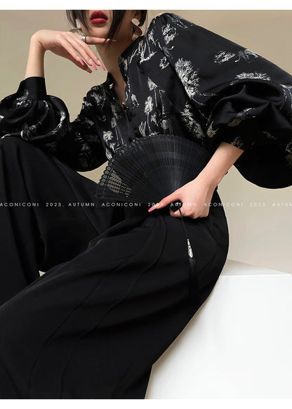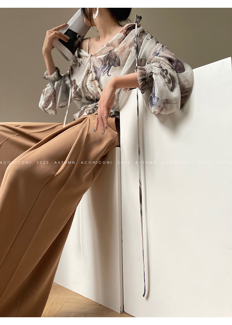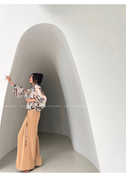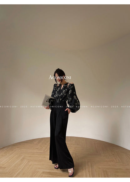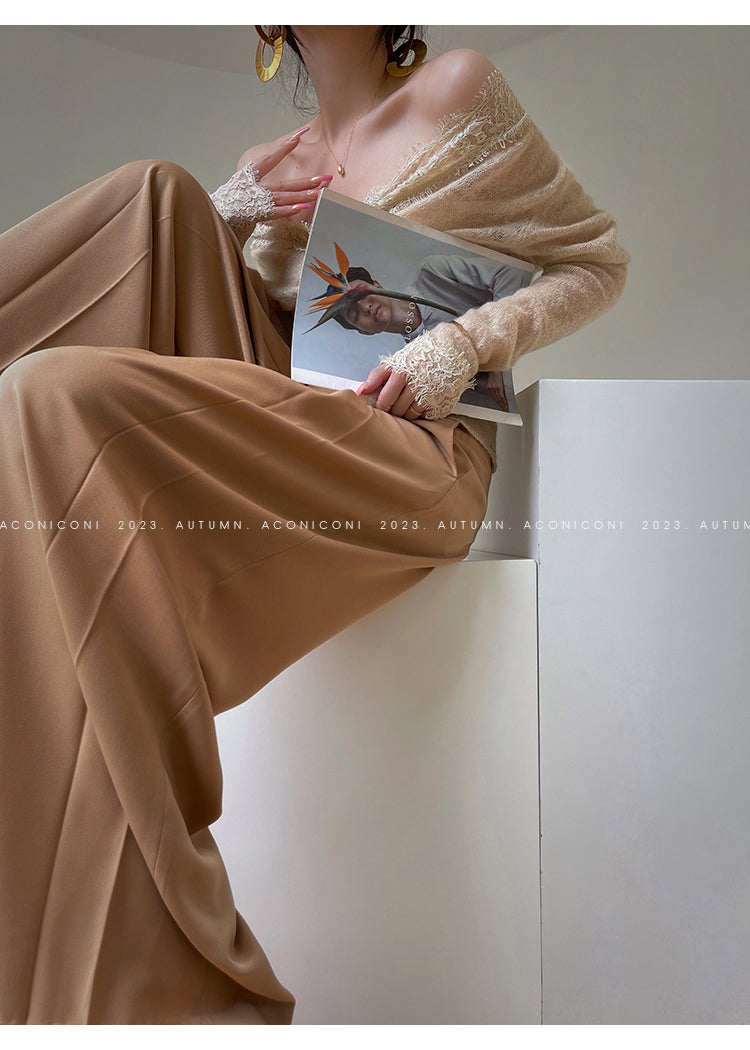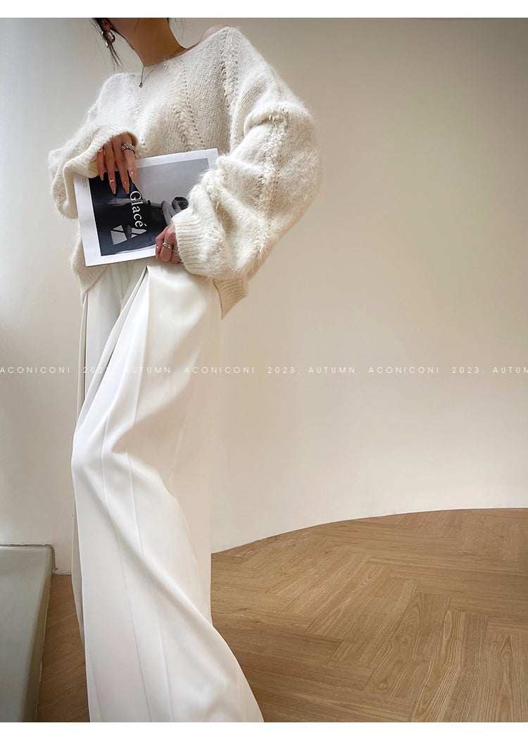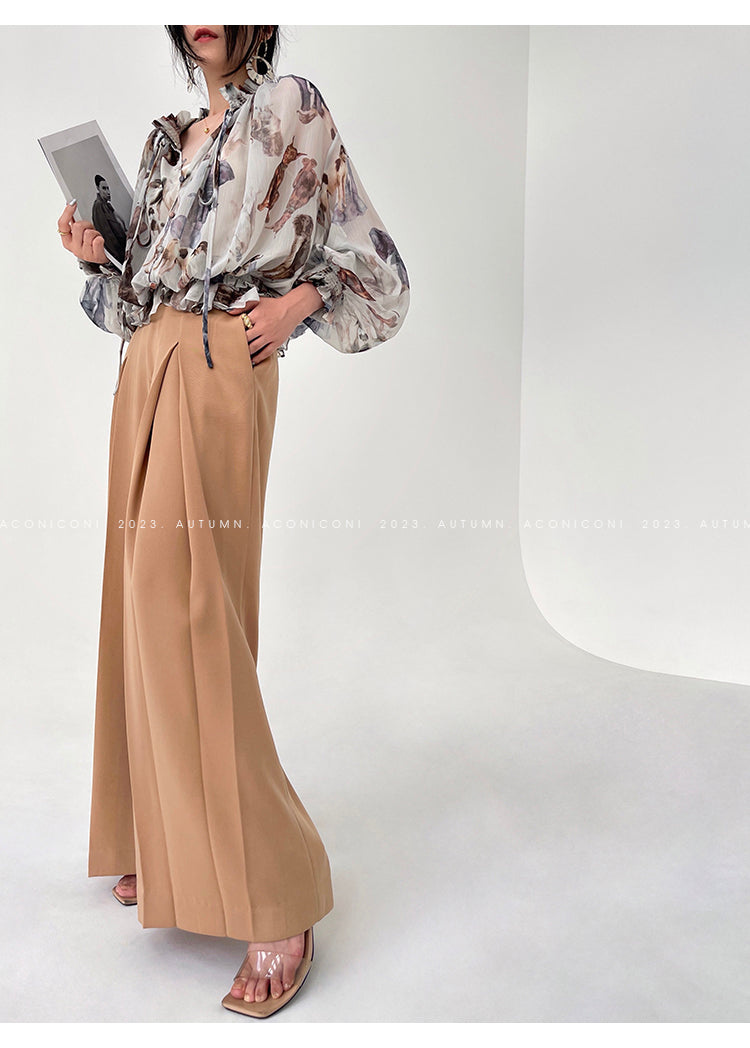 Aconiconi Eleant White Waist Loose Long Straight Suit Dinner Pants- Cloud Steps