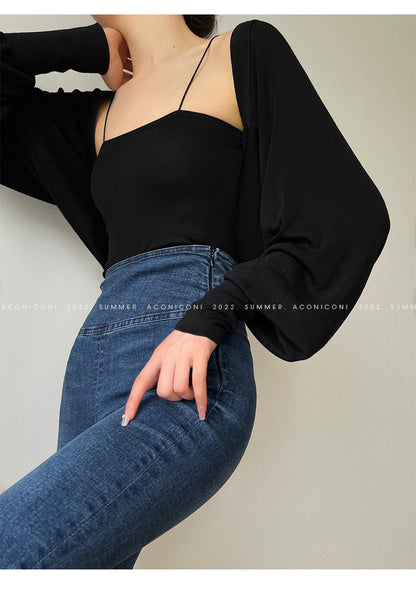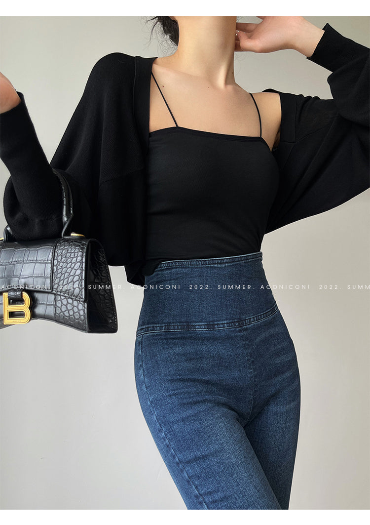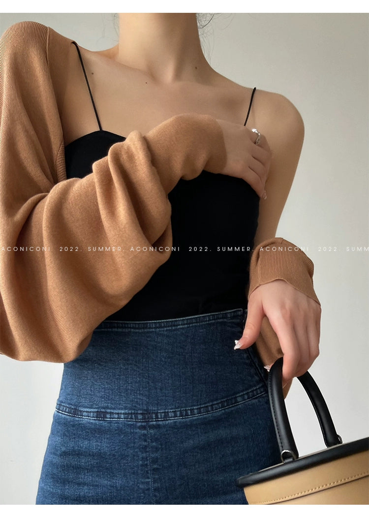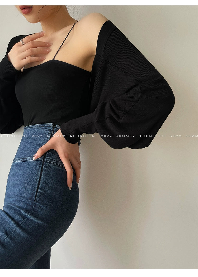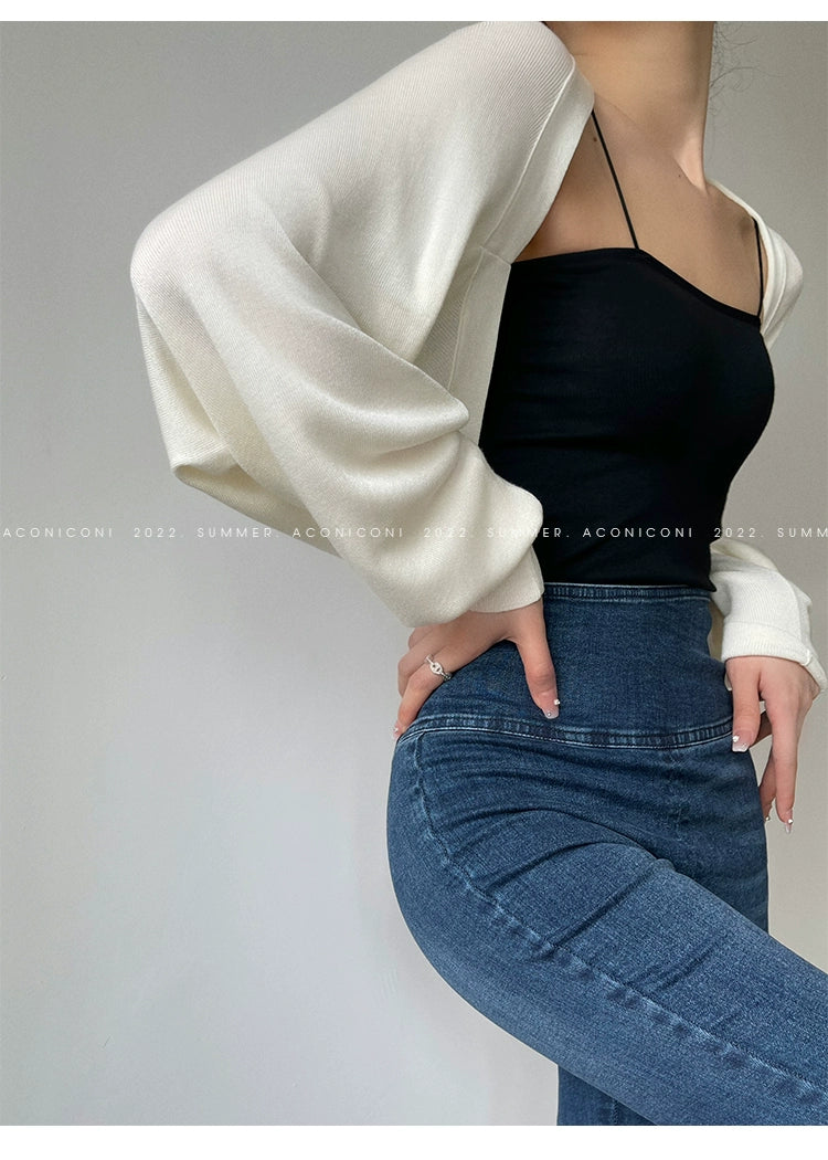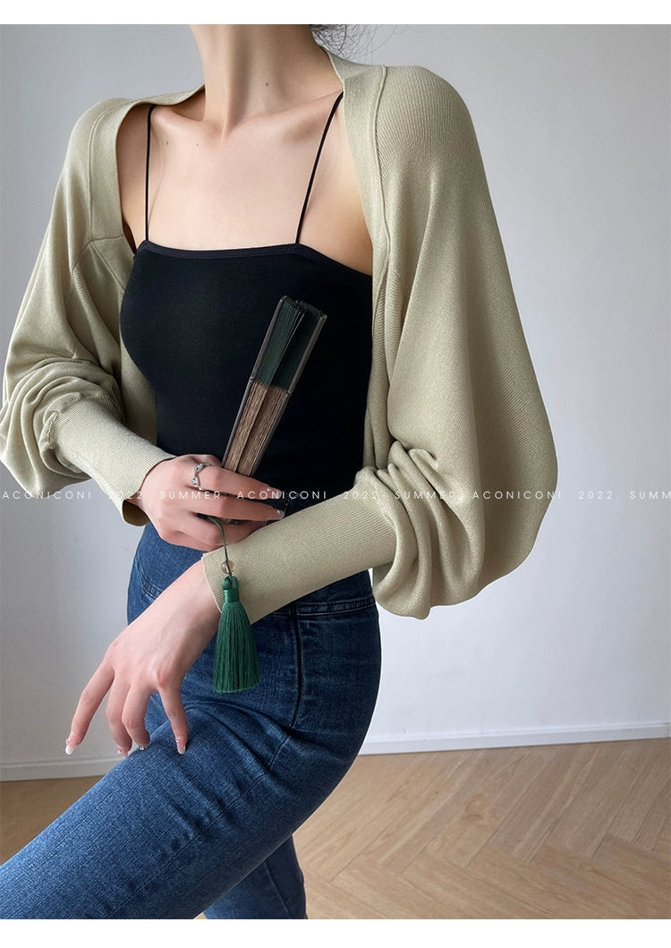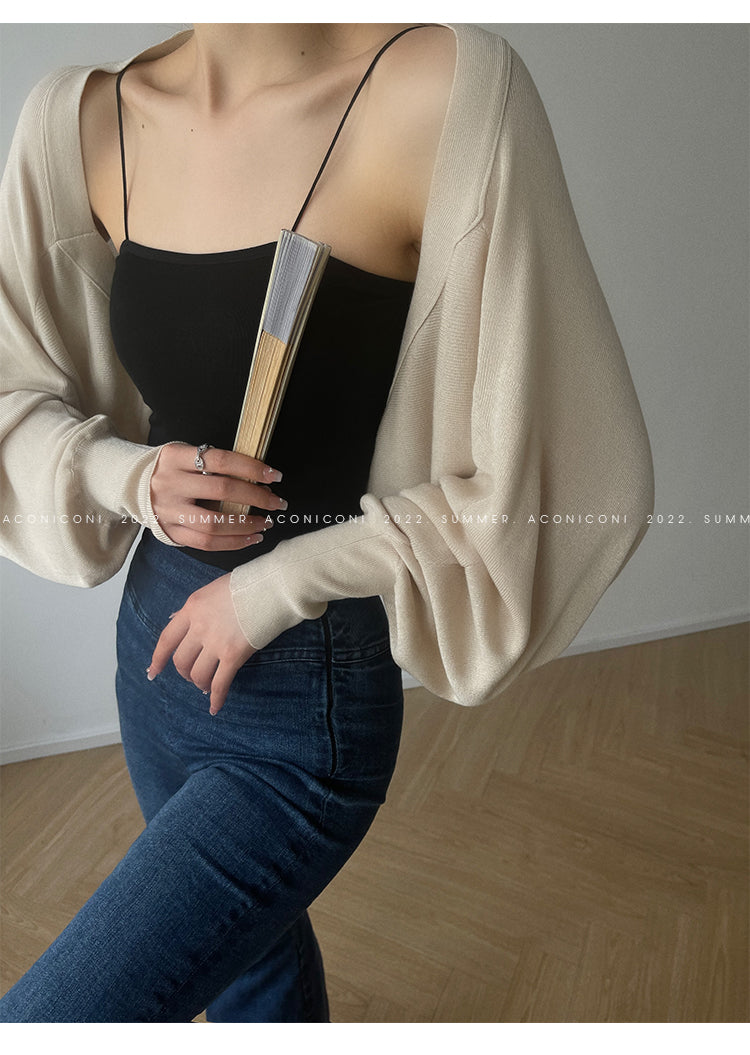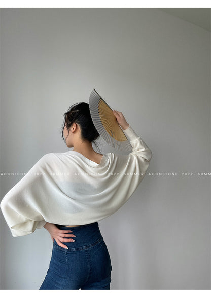 )Aconiconi Elegant Bat Style Long Sleeve Chic Versatile Cardigan-Jessica (vvv)