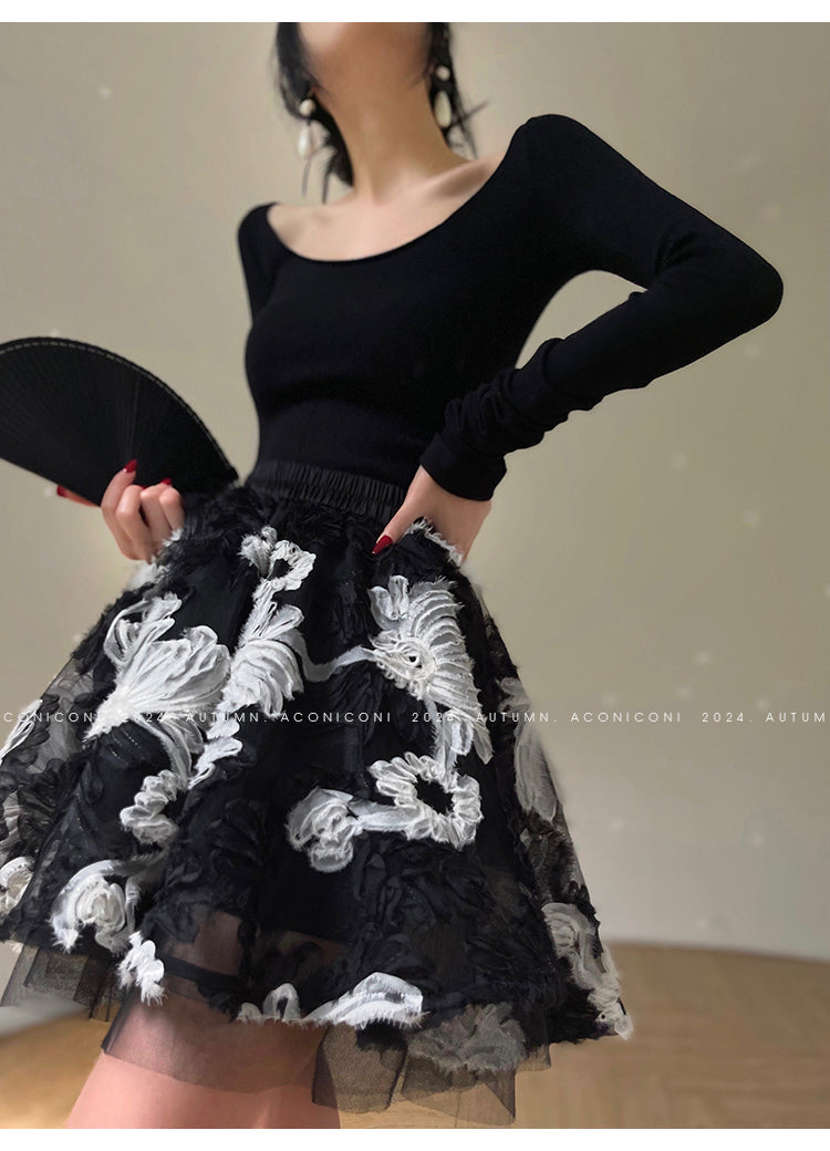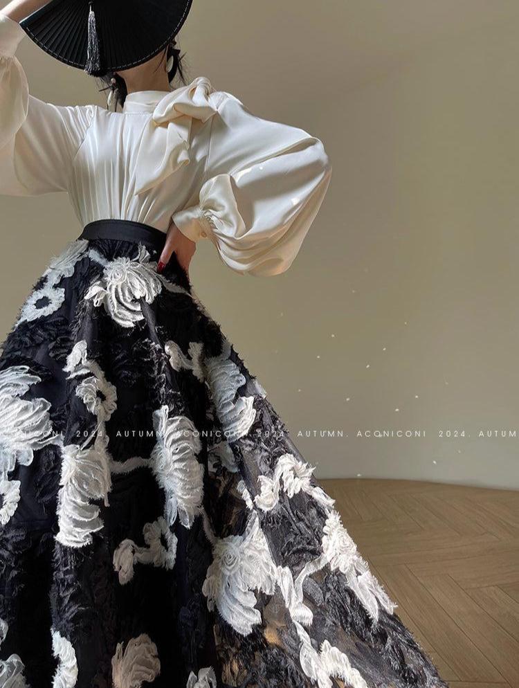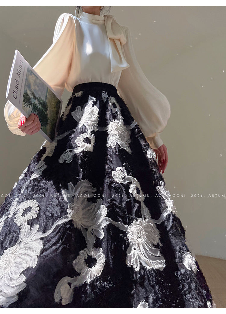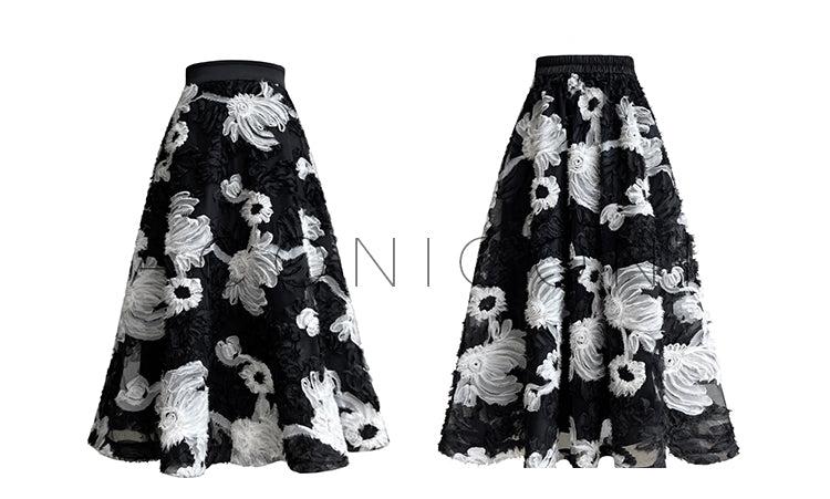 Indulge in the luxury of our Aconiconi Elegant Black Retro Flower Embroidered High Waist Midi Skirt. This gorgeous skirt features intricate flower embroidery and a high waist for a chic and stylish look. Perfect for the fall season, this high class skirt is a must-have for any sophisticated outfit, whether it's for work, church, or weddings. Elevate your fashion game with this exquisite and timeless piece.