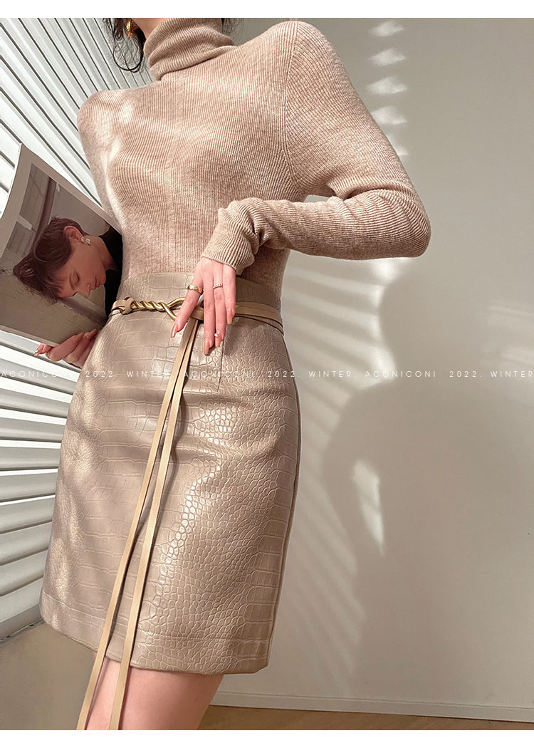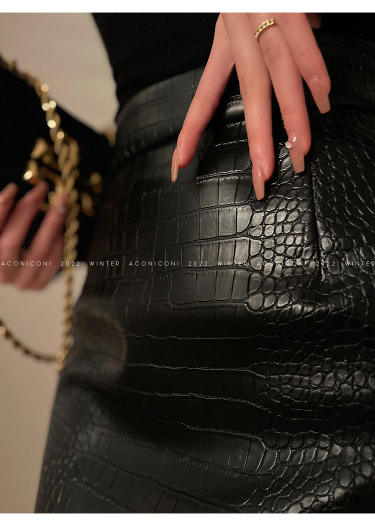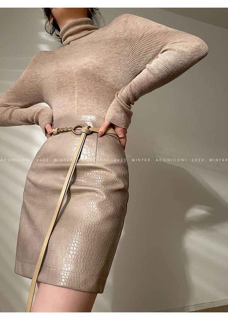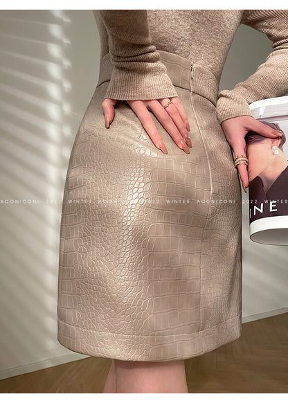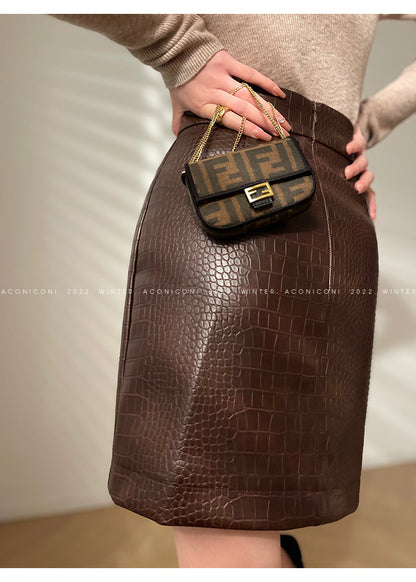 Indulge in elegance with the Aconiconi Elegant Dark Brown High Waist Short Leather Chic Skirt-Bene. This luxurious piece features a high waist design that accentuates your curves and exudes a sense of sophistication. Crafted with premium leather, it boasts a sensual and chic appeal that will leave everyone mesmerized. Elevate your style and feel confident with this sexy skirt.
