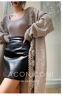 Aconiconi Elegant High Waist Short PU Leather Chic Skirt-Holiday Love Poems