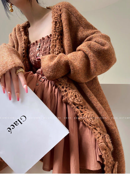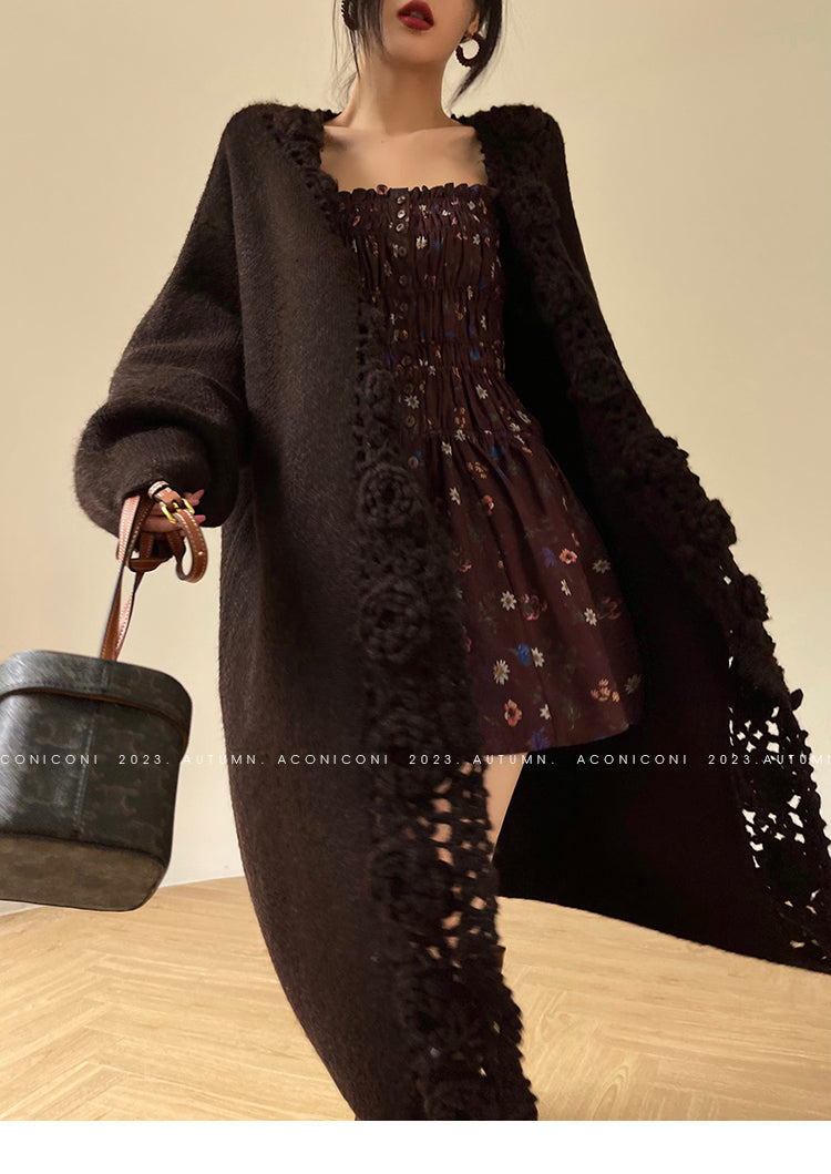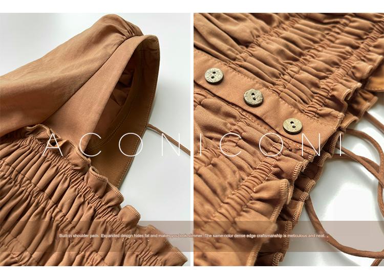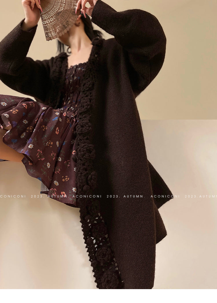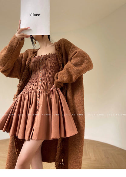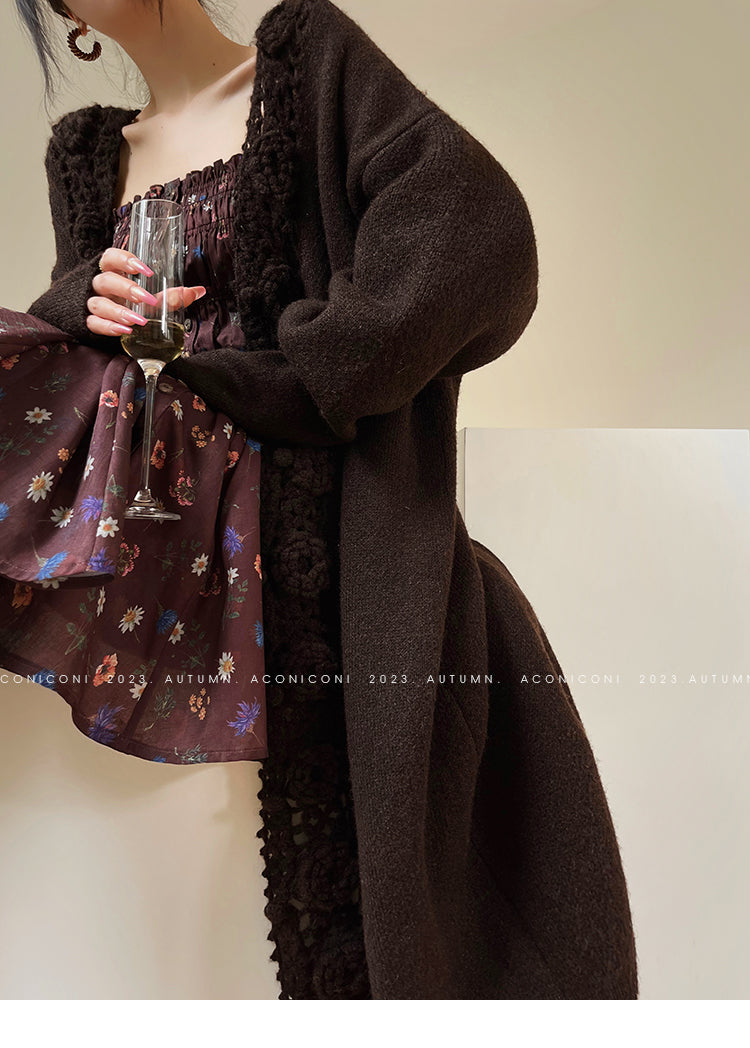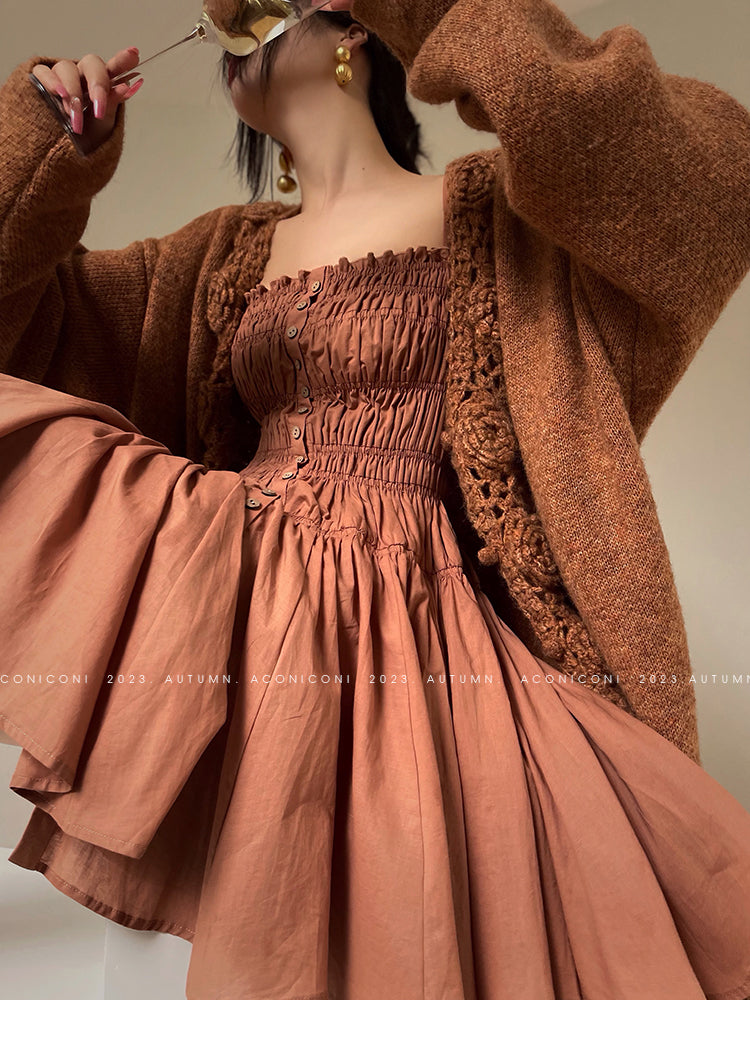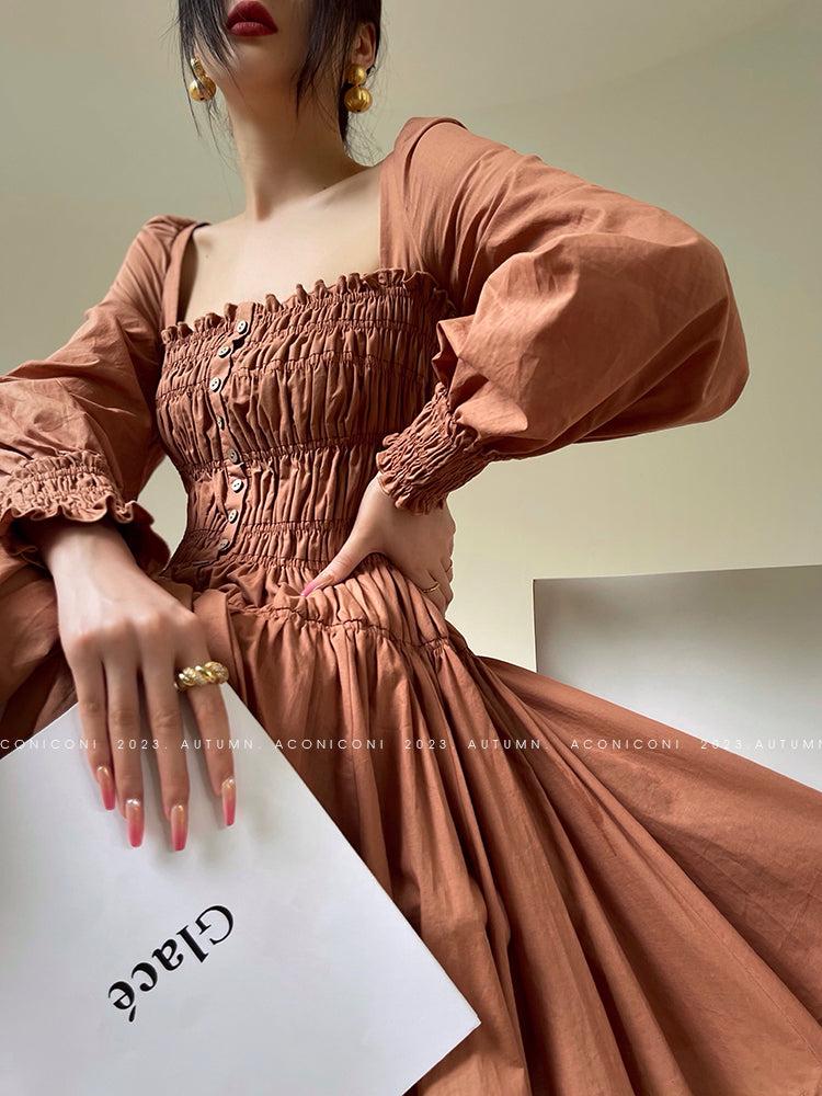 Aconiconi Autumn Floral print French A line brown cottage Dress- Samba Moon