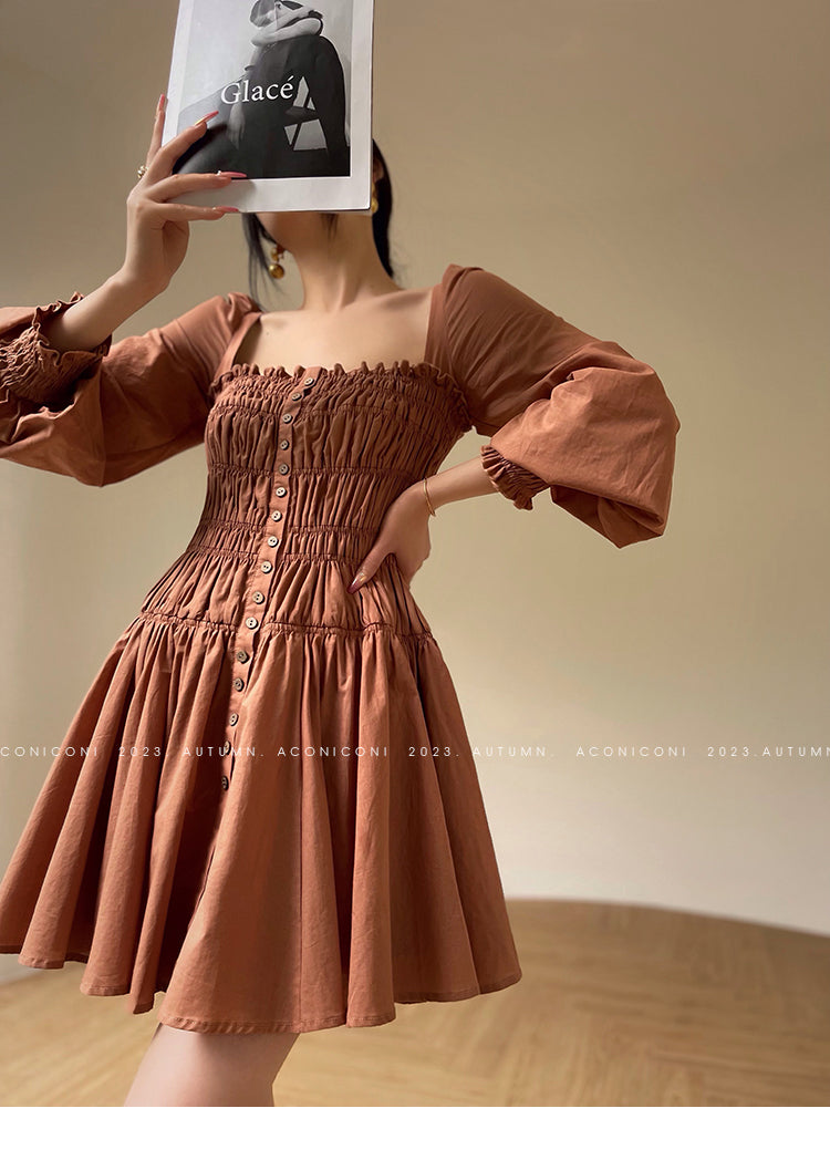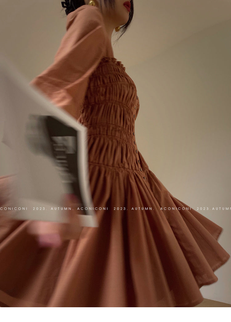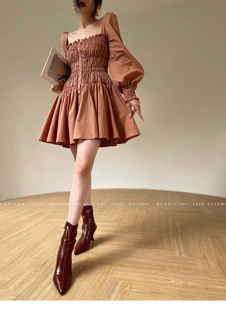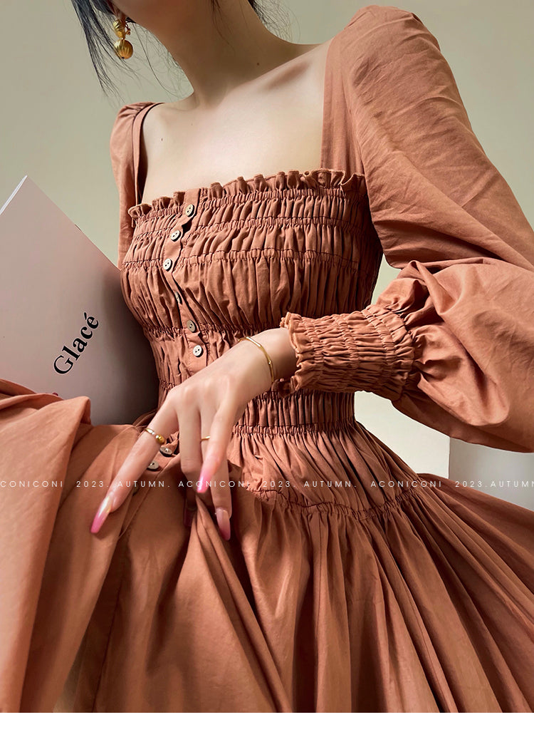 Indulge in the ultimate luxury and sophistication with Aconiconi's Elegant French Square Neck Long Sleeve Aline Dinner Dress - Samba Moon. This dashing dress features a chic and stunning square neck and beautiful long sleeves, perfect for any high-class event or dinner party. With its exquisite fall autumn design, this dress is sure to make you feel gorgeous and chic.