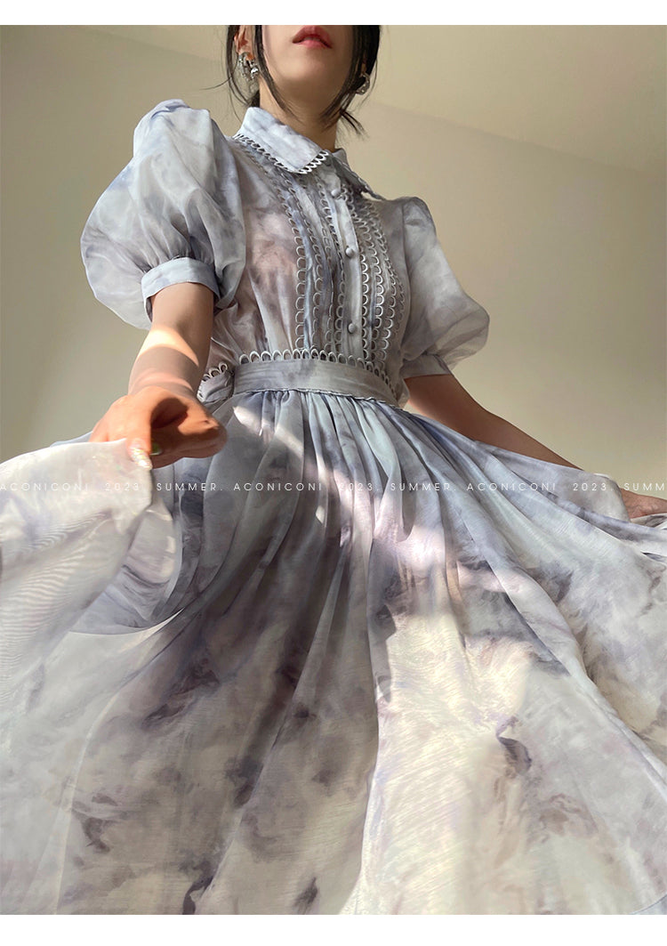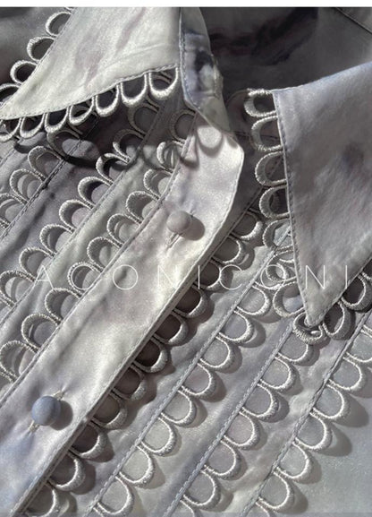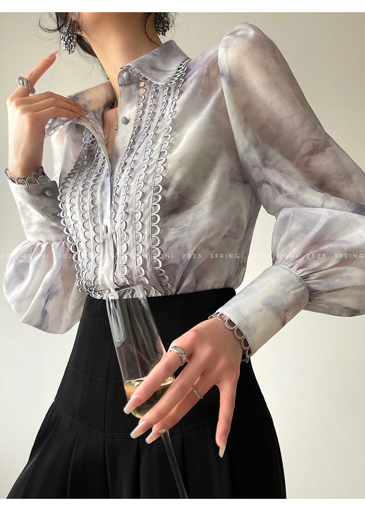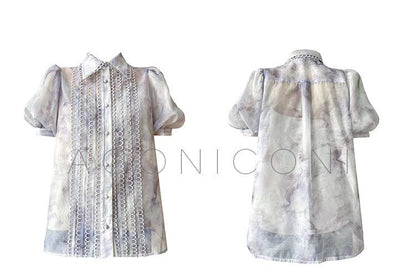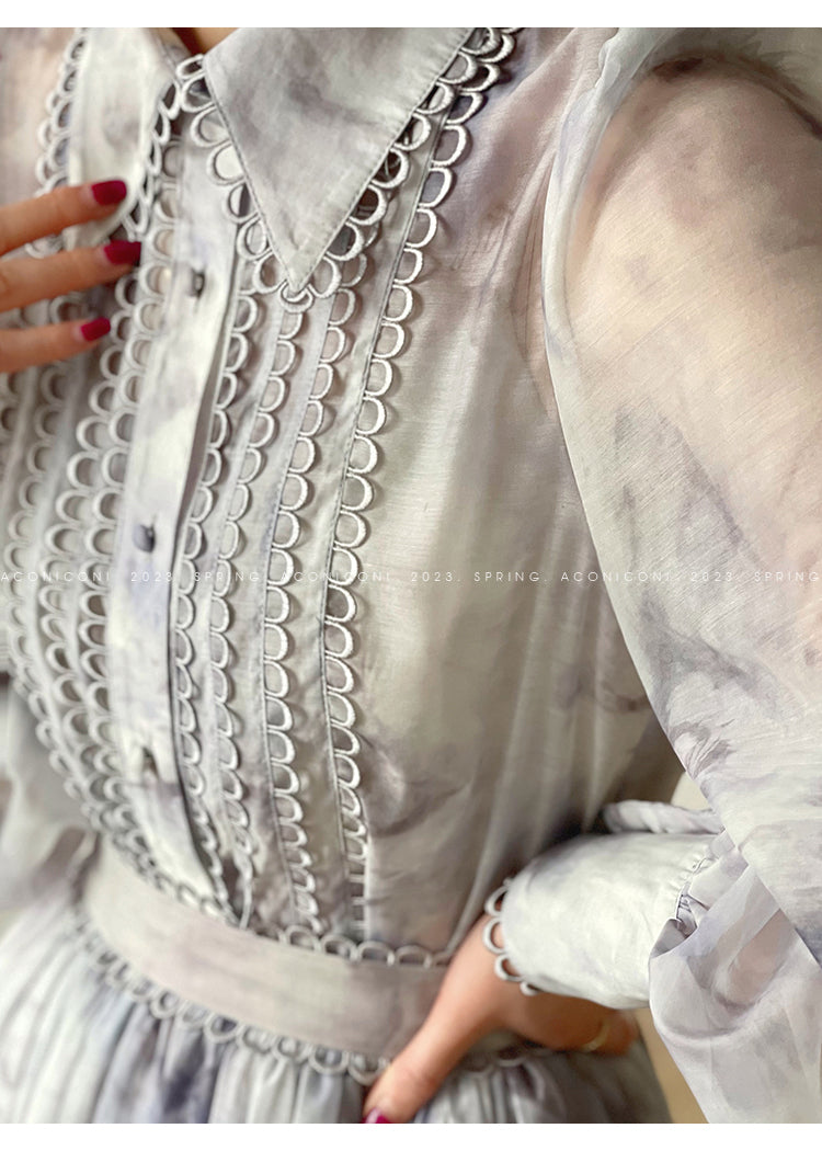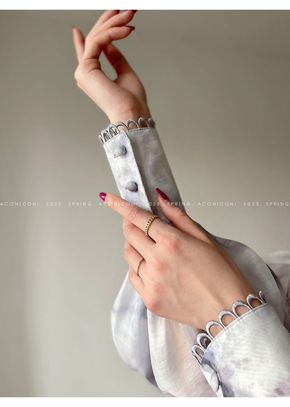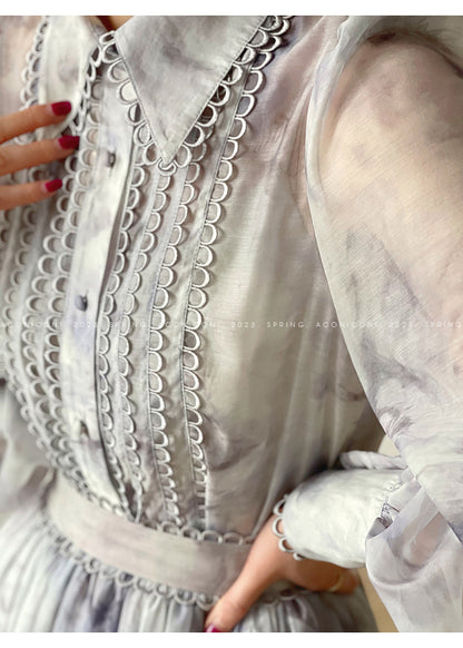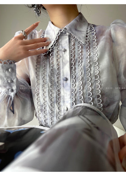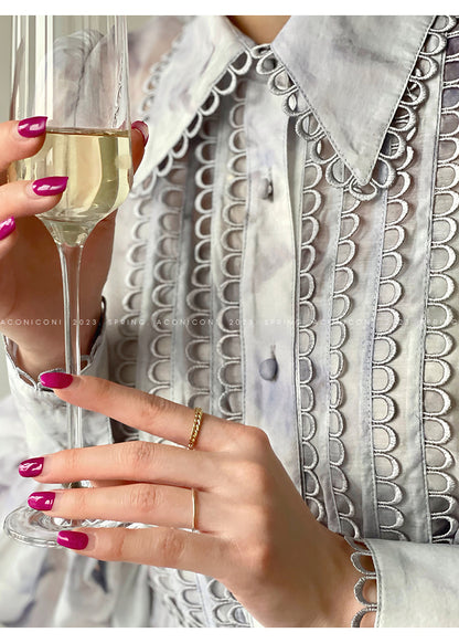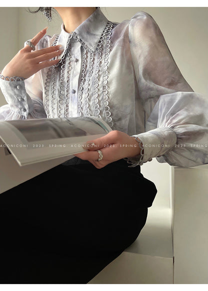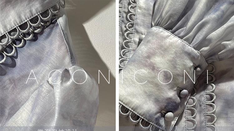 Aconiconi Elegant Light Blue French Tie-dye Lace Shirt- Floating Island