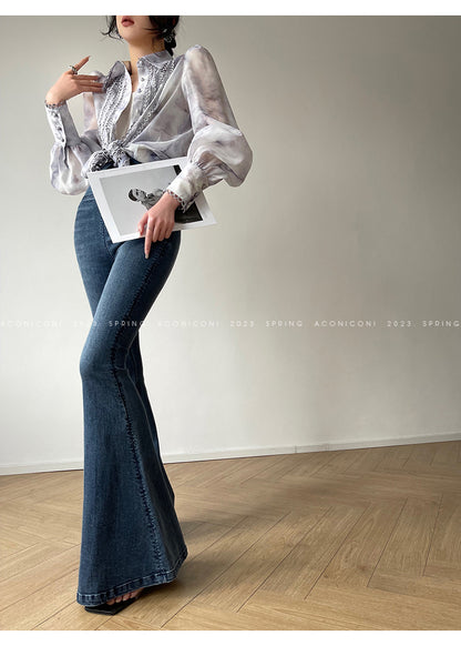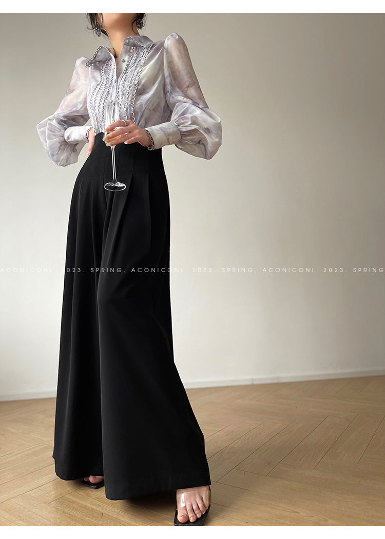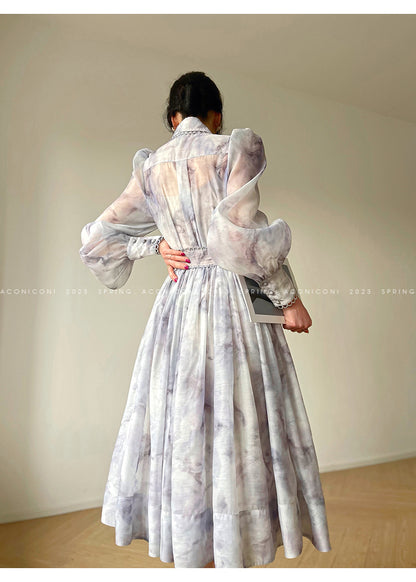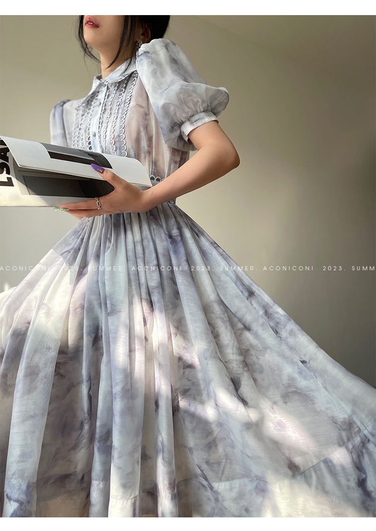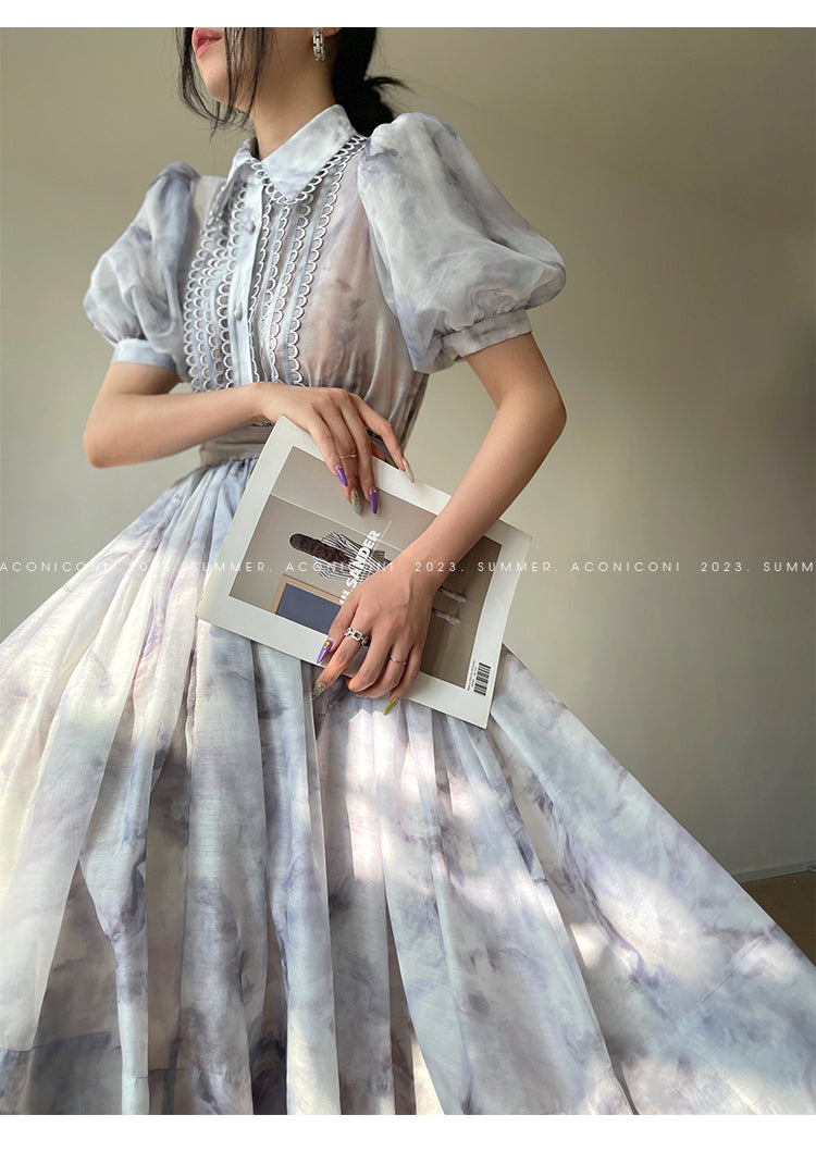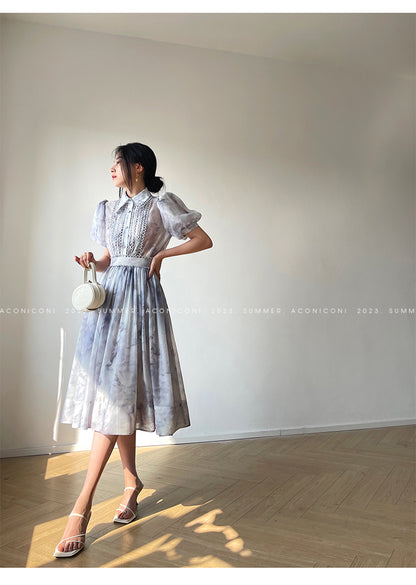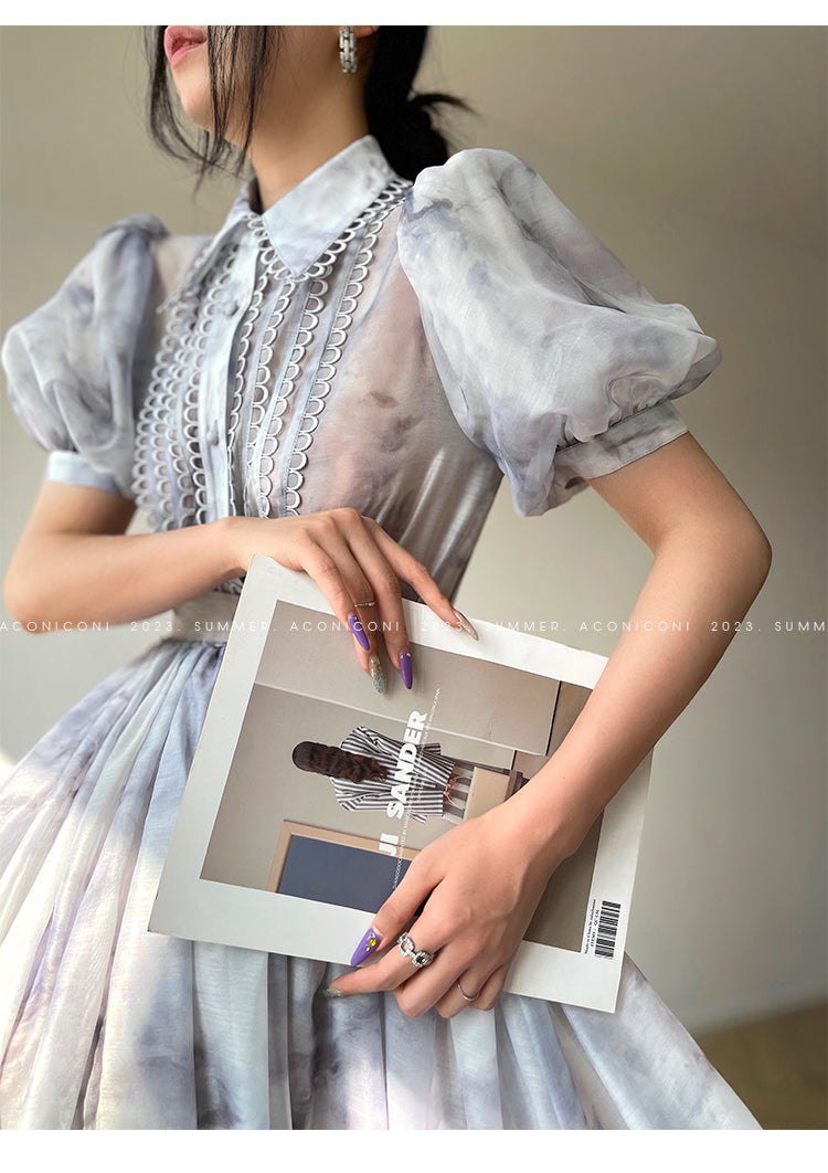 Aconiconi Elegant Light Blue French Tie-dye Lace Shirt- Floating Island