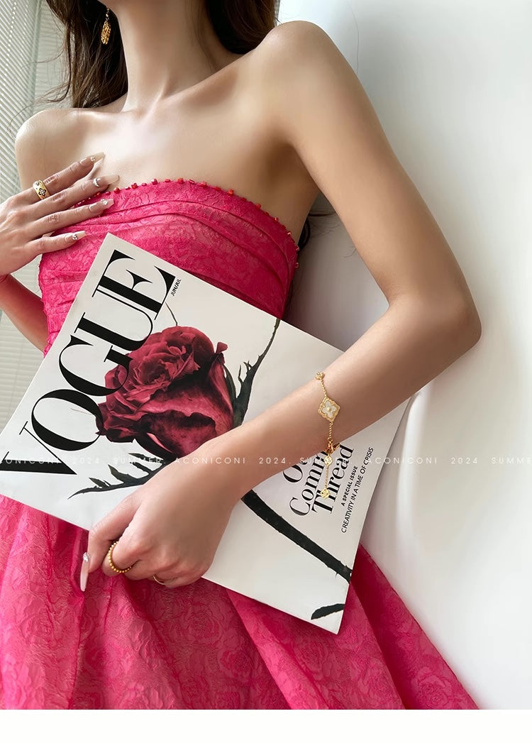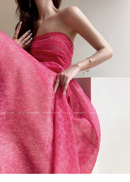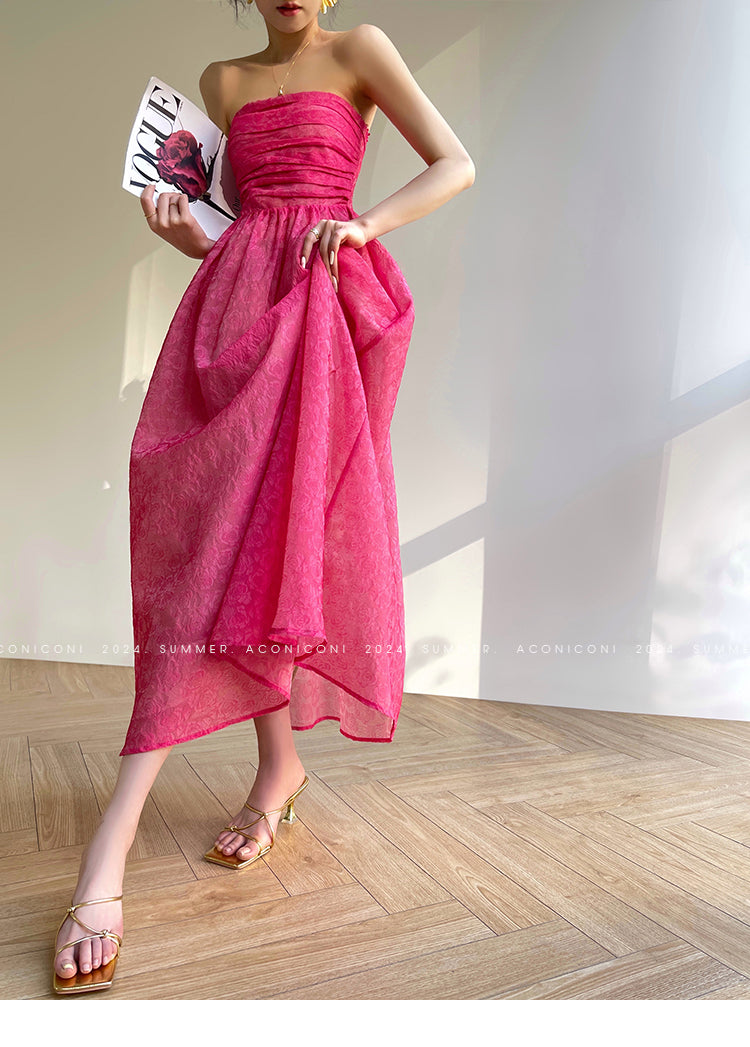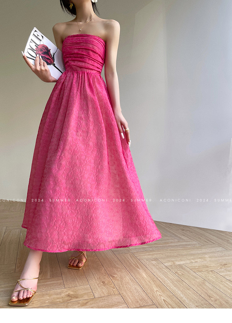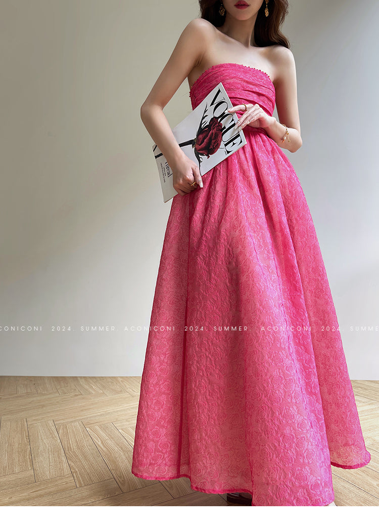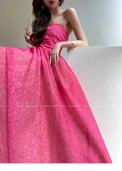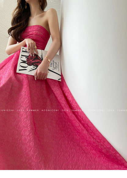 Aconiconi Elegant Magenta pink strapless Long French Dress- Chanson Riche