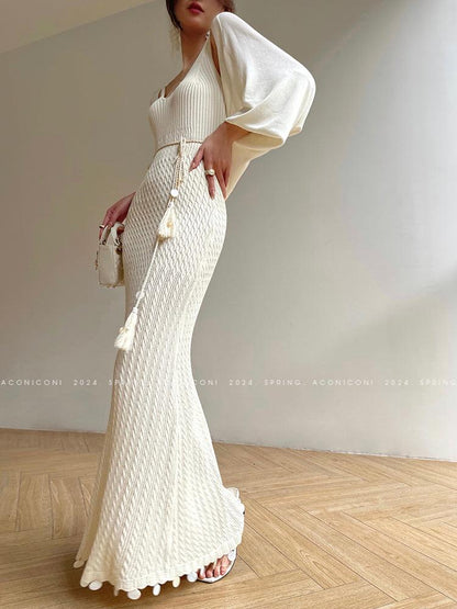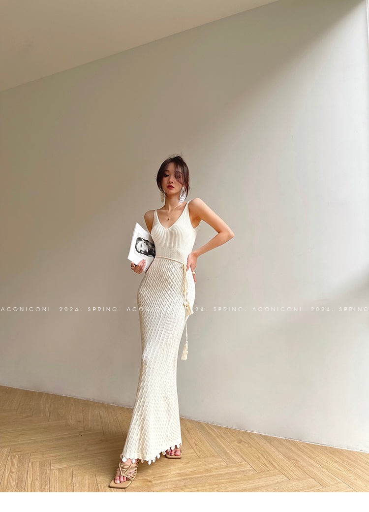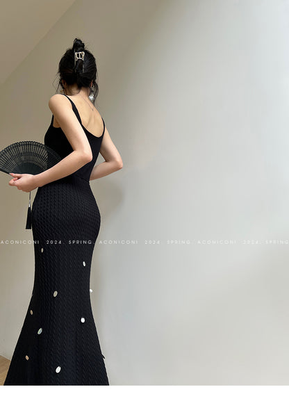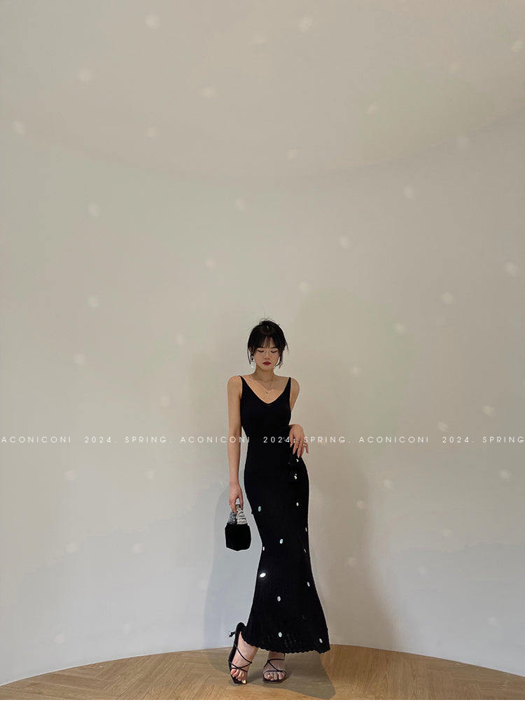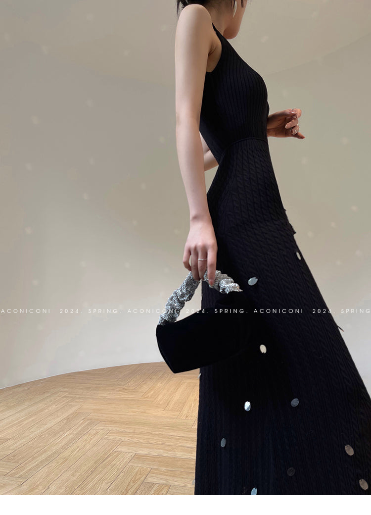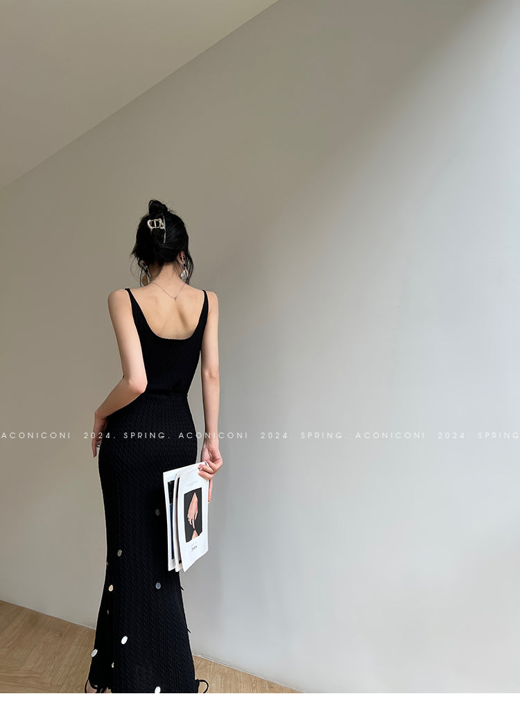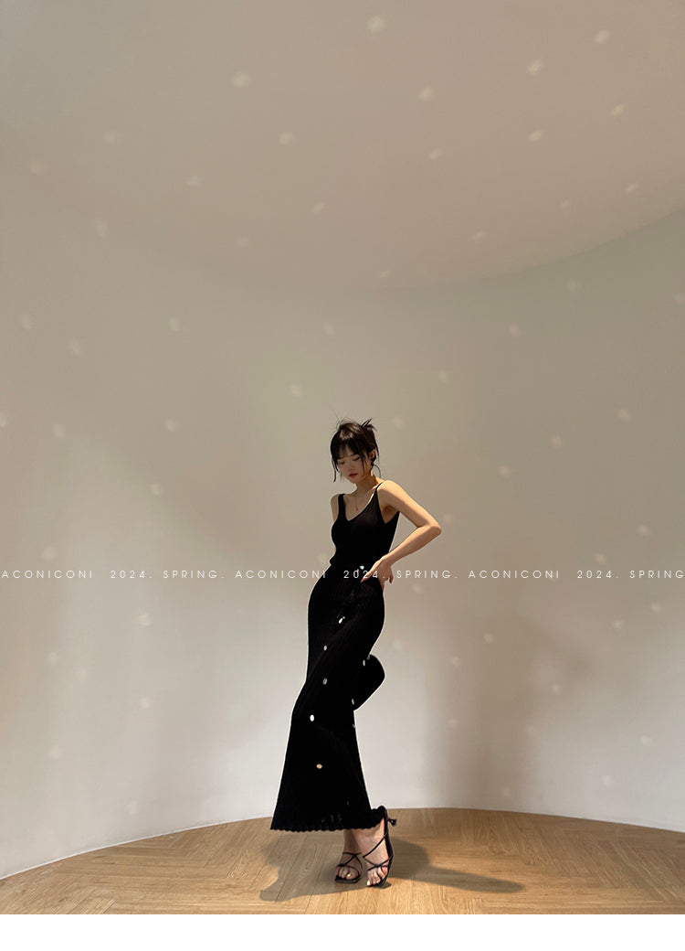 Aconiconi Elegant Sleeveless body con Maxi knit Dinner Dress- Xuelan Evening Sound