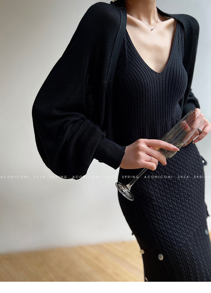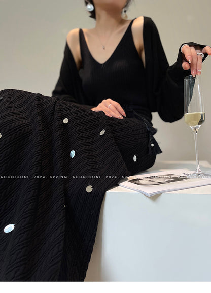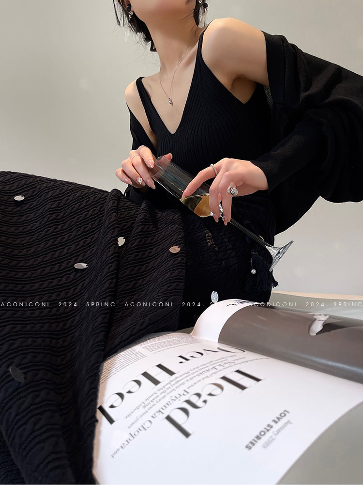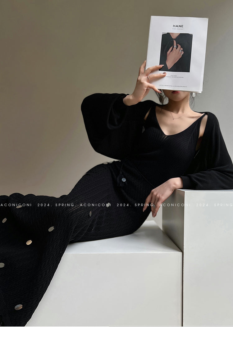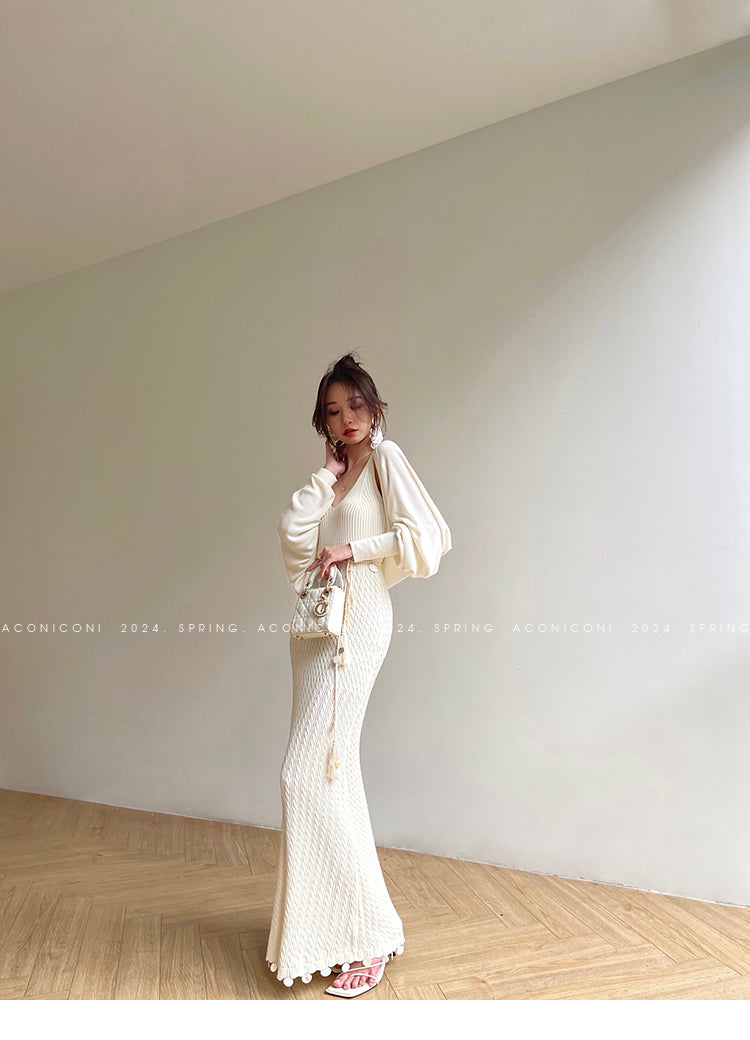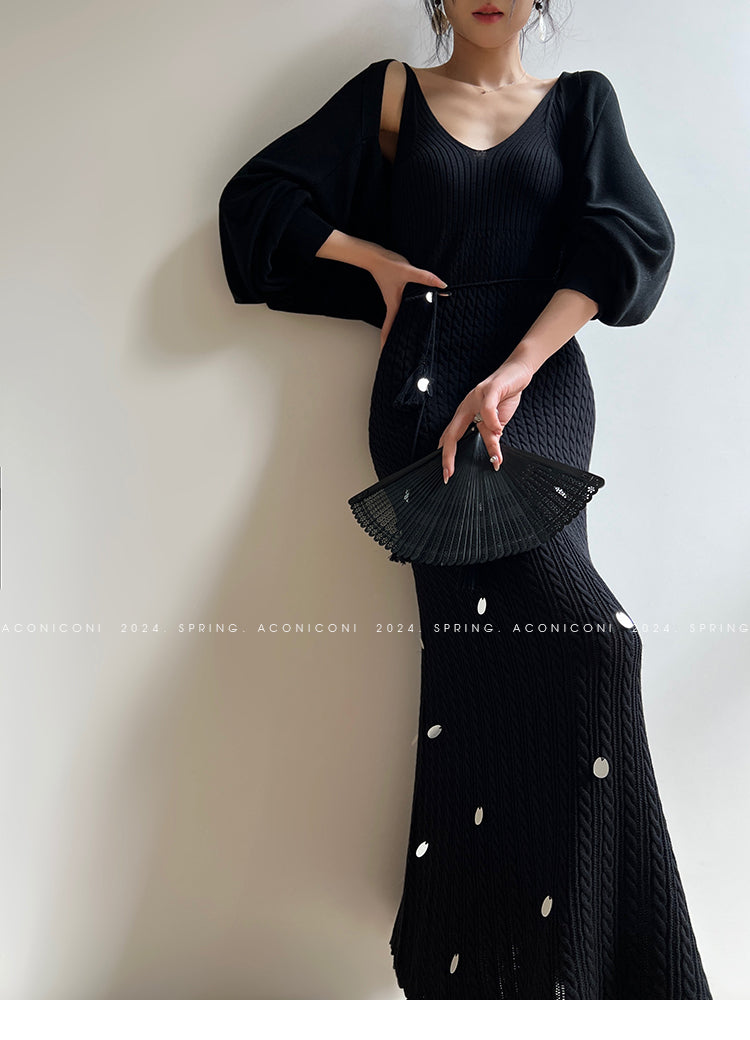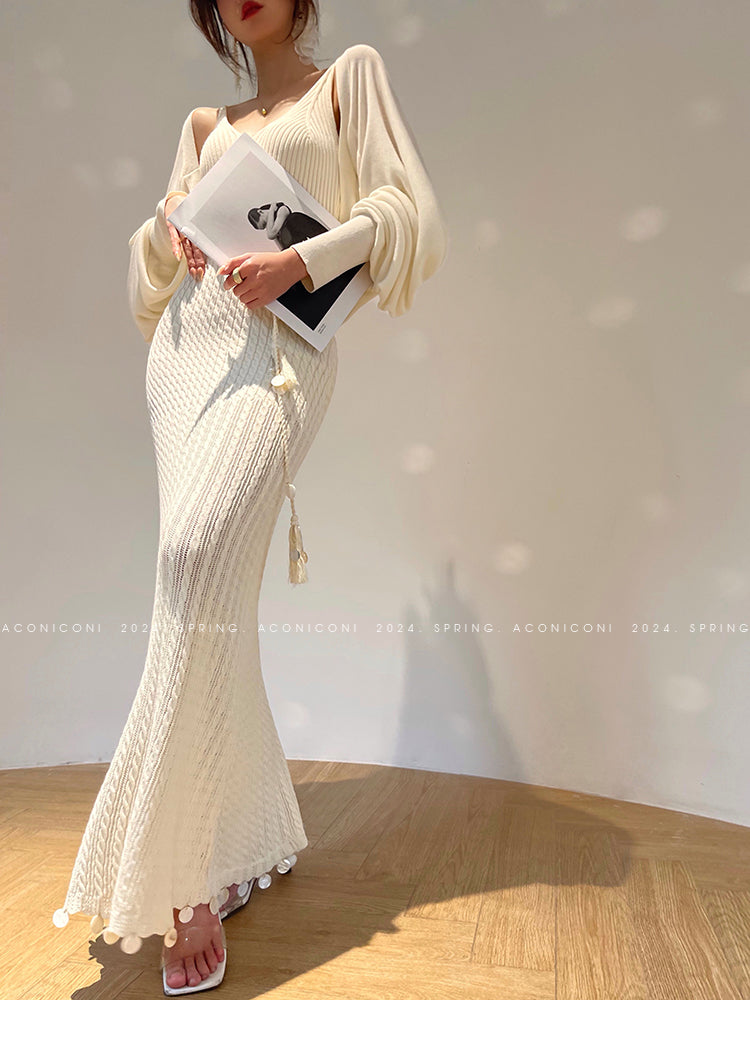 Aconiconi Elegant Sleeveless body con Maxi knit Dinner Dress- Xuelan Evening Sound