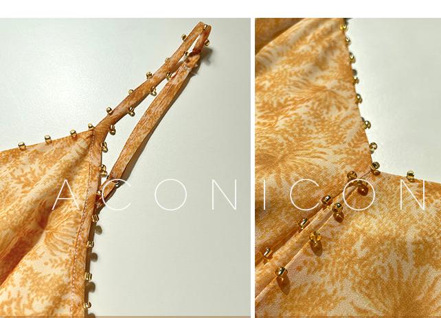 Introducing the Aconiconi Elegant Orange Pearl V-Neck Sleeveless Dress - the perfect addition to your wardrobe this fall. With its dashing pearl v-neck and loose long resort style, this chic and glamorous dress will make you feel stunning and flamboyant. Whether you wear it for a hangout, church, or wedding, this dress exudes pure elegance and class. Don't miss out on this fashionable and exclusive piece.